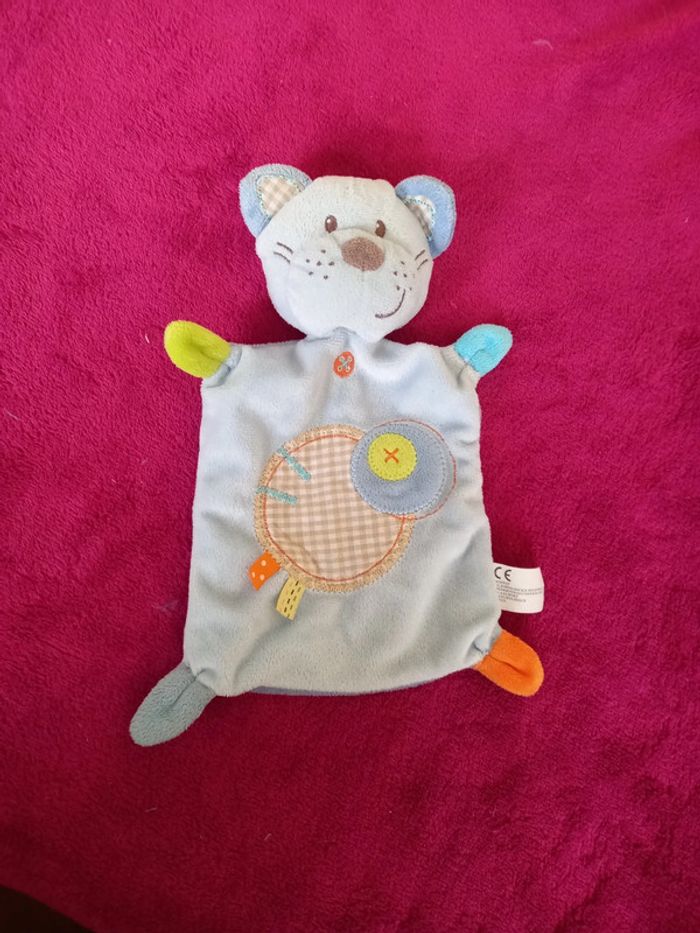 Doudou Chat Bleu avec motifs de divers couleurs Marque : Nicotoy Article en parfait état
