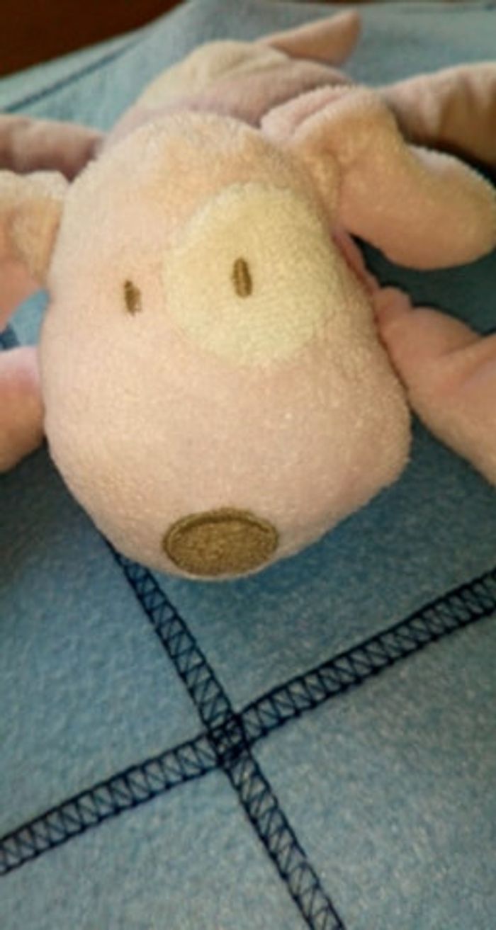 Doudou peluche chien de couleurs rose et blanc Bon état