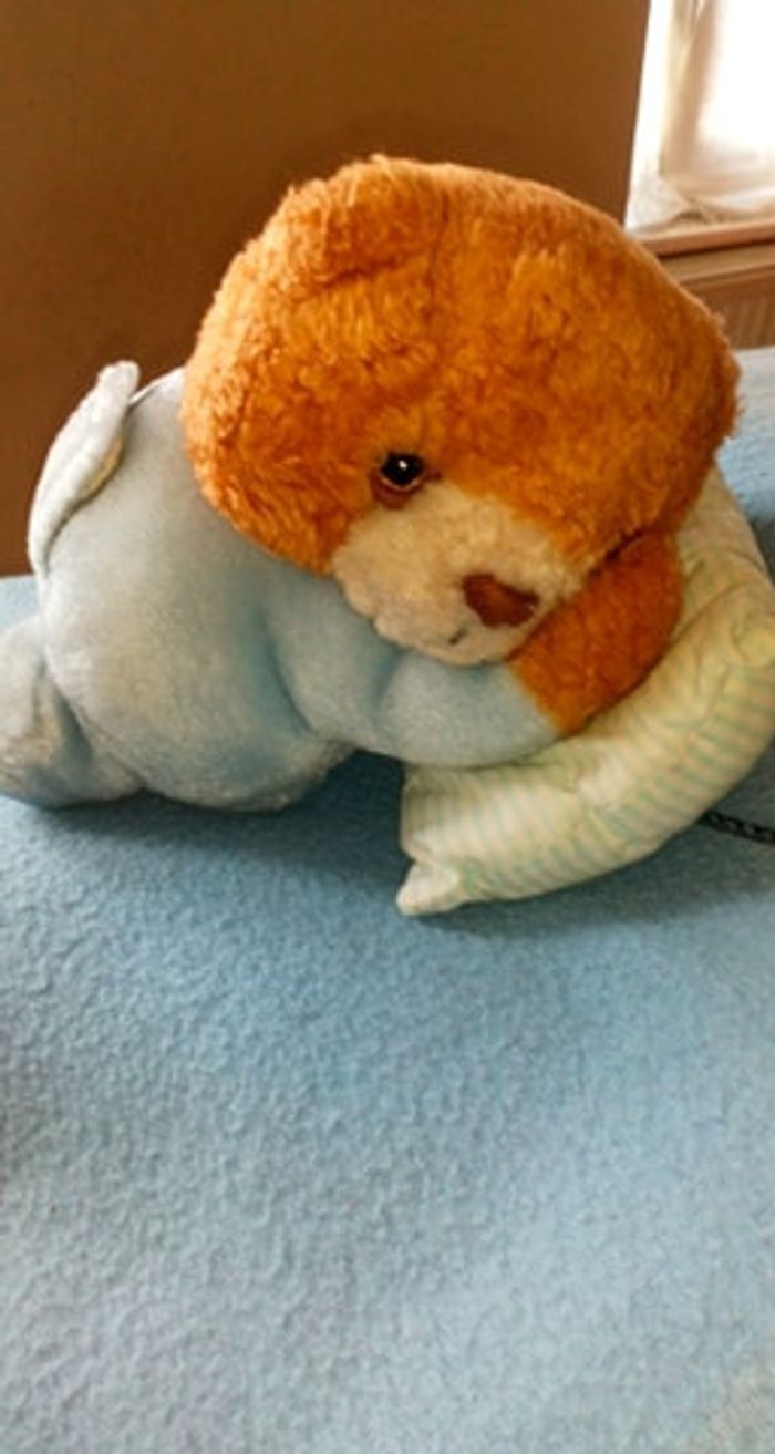 Lot de 2 oursons bleu avec oreiller de couleurs brun Bon état