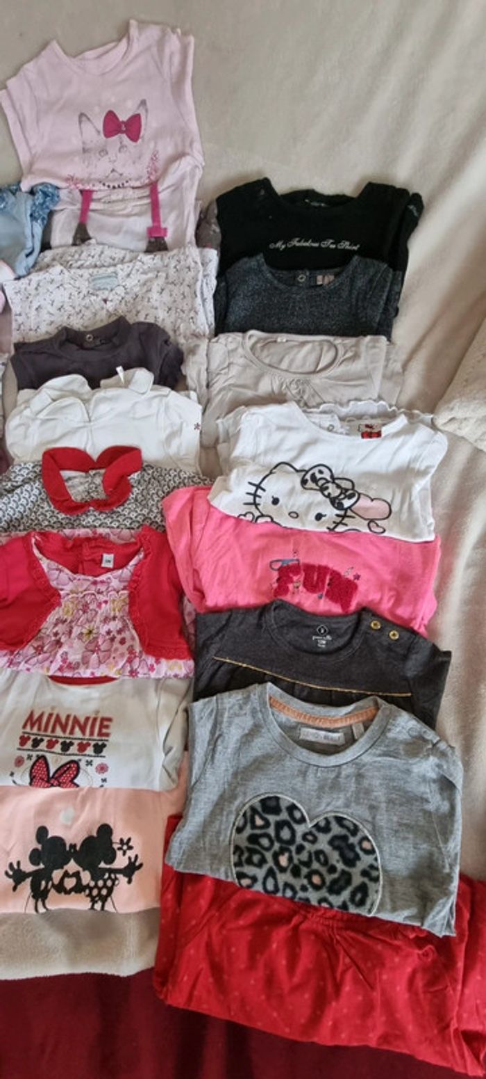 Bon état 24 tee-shirts manches longues 1 chemise 12 mois fille différentes marques #caroline21140#12moisfille