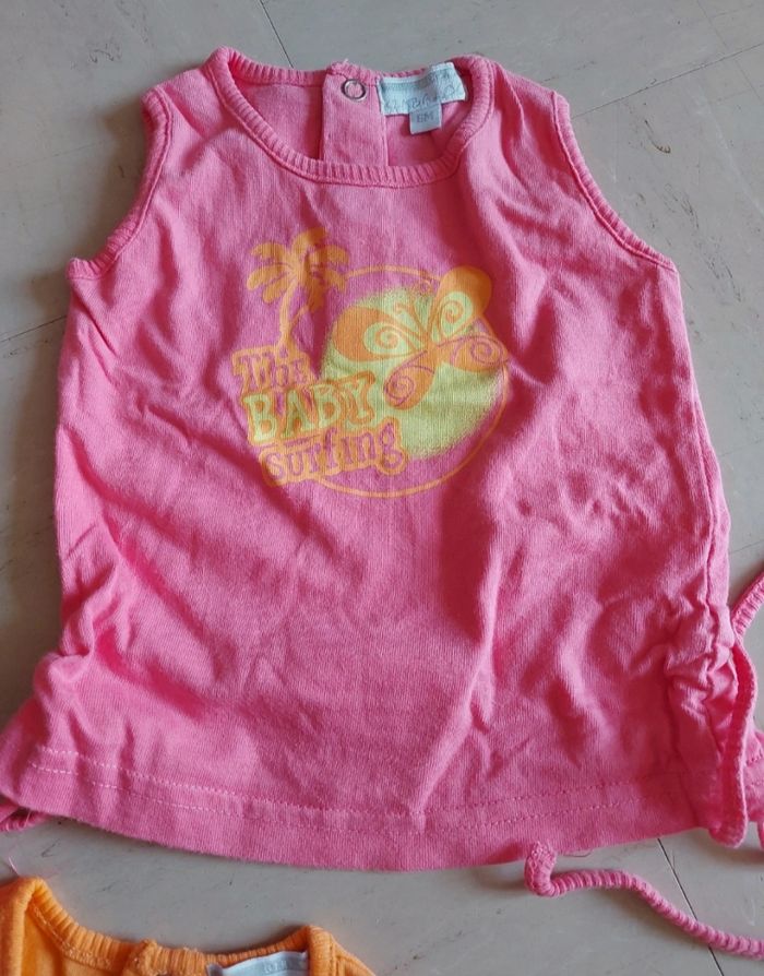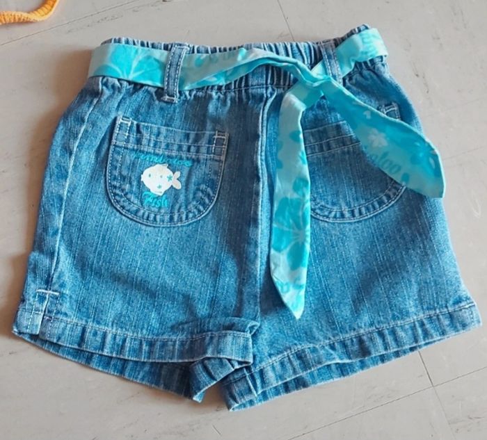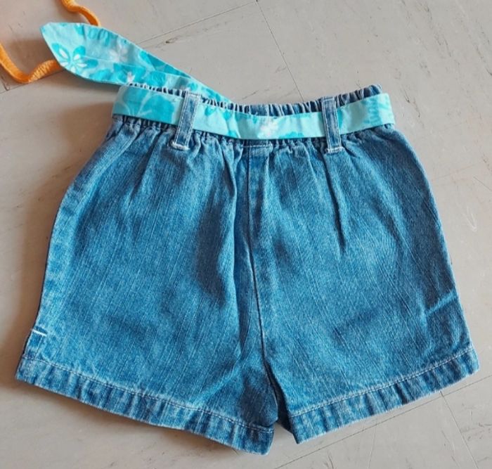 Ensemble composé d'un short en jean et de 2 débardeurs.