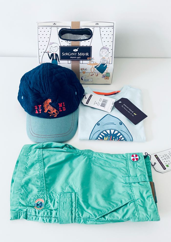 Magnifique ensemble Sergent Major comprenant un bermuda, un tee shirt et une casquette Taille 2 ans Articles neufs avec étiquette Prix d’achat 46€