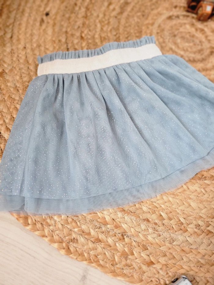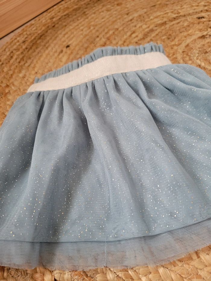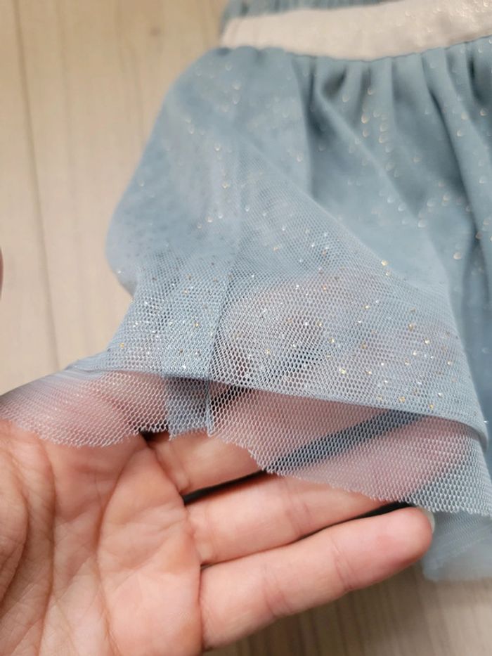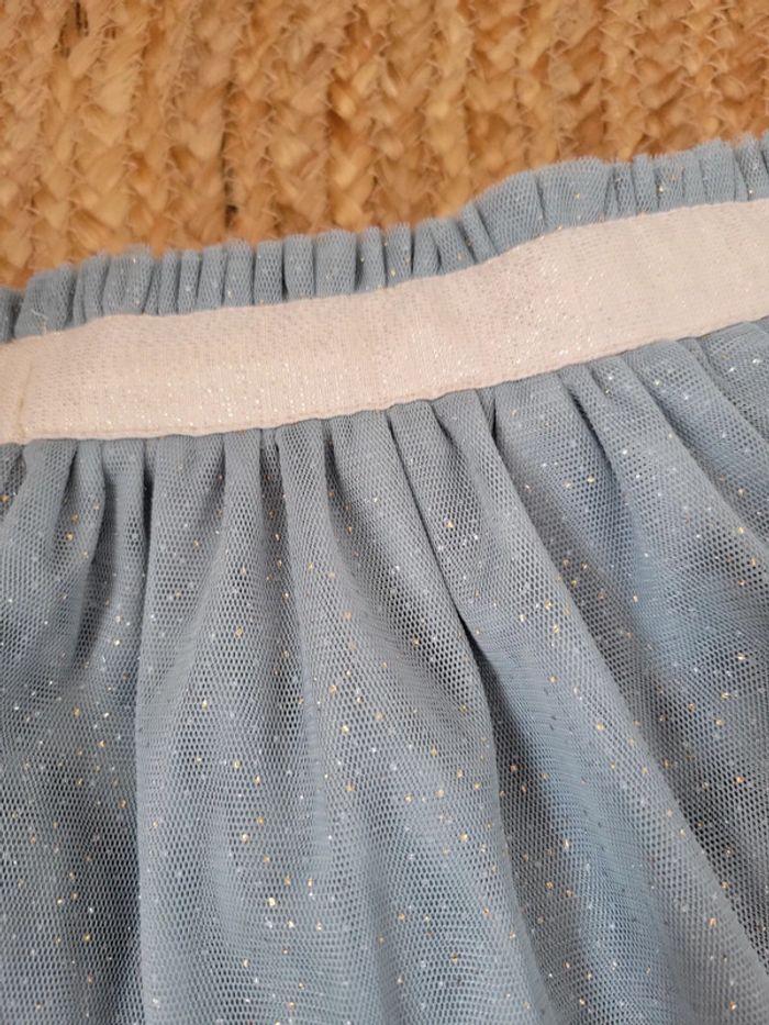 Jupe à strass dorés et argentés Idéal pour les fêtes (Noël par exemple) ou une cérémonie 6 mois Marque Tape à l'œil Le tulle a l'air coupé à un endroit (cf photo). Je n'ai pourtant pas eu l'occasion de la mettre à ma fille. Se voit pas porté