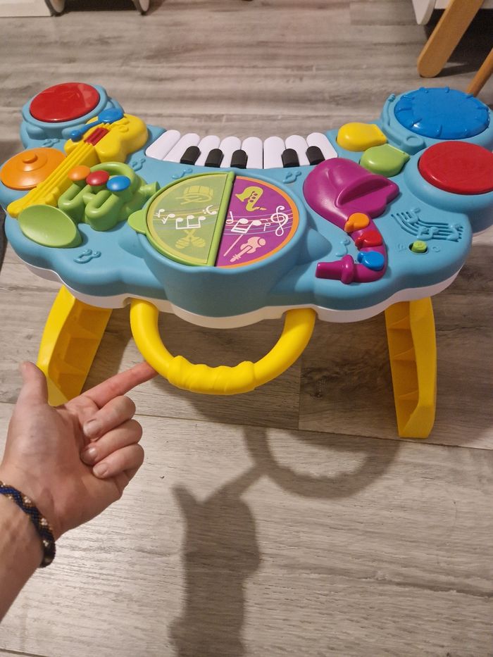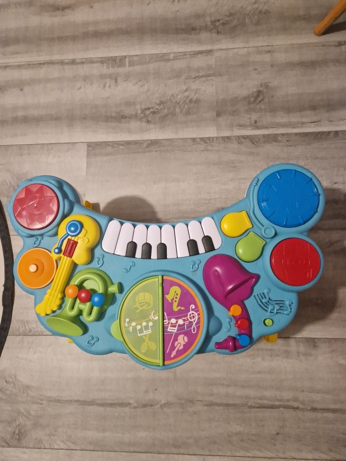 Pour enfants de 12 à 36 mois Centre Musical doté de 10 instruments de musique qui permet de découvrir les sons et créer ses premières mélodies Le centre musical offre 25 sons et mélodies différentes préenregistrés La poignée de transport permet d'emporter son centre musical partout avec soi Fonctionne avec 2 piles LR06 fournies
