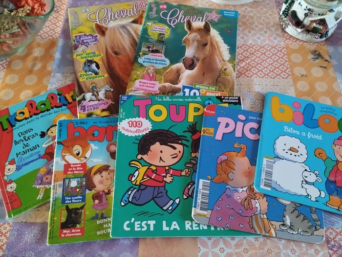 En très bon état sauf deux magazines où il est écrit un nom dessus et un magazine où il manque les autocollants.
