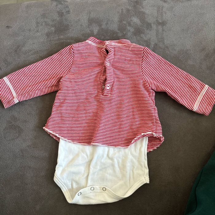 Body et haut cousues ensemble, marque, petit bateau, rayé rouge fille 3 mois