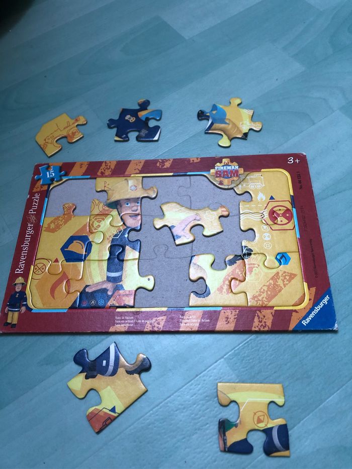 Puzzle « Ravensburger » « Sam le pompier en action » de 15 pièces pour enfant de 3 ans et+ Les coins sont légèrement écornés mais le puzzle est en parfait état