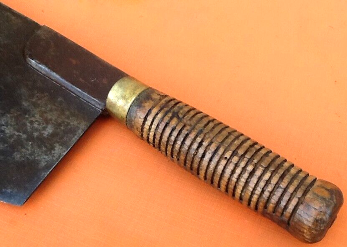 (article vendu en l' état, manche fissuré voir toutes les photos) Années 1930 Couperet / Hachoir / Feuille de Boucher Longueur : 410mm Largeur : 110mm Poids : 760grs