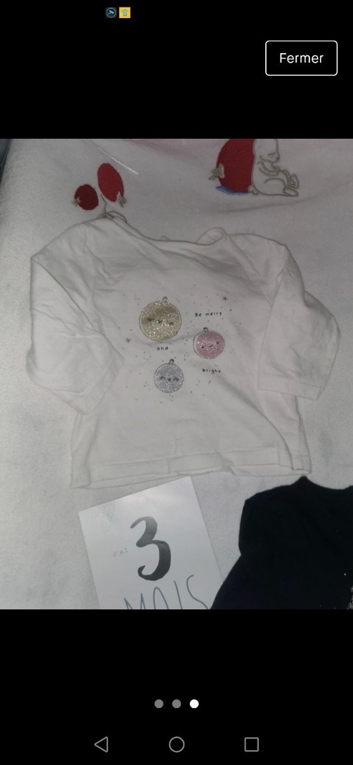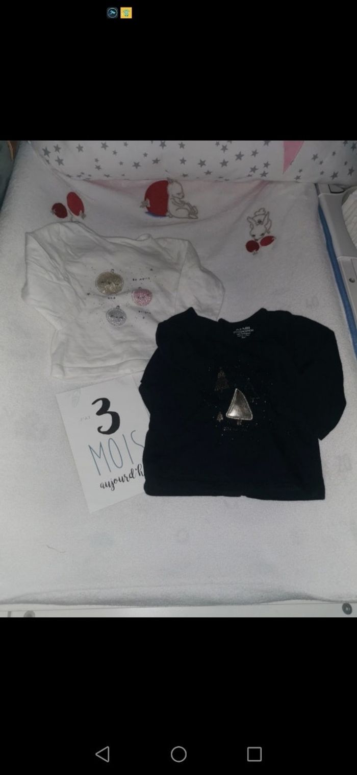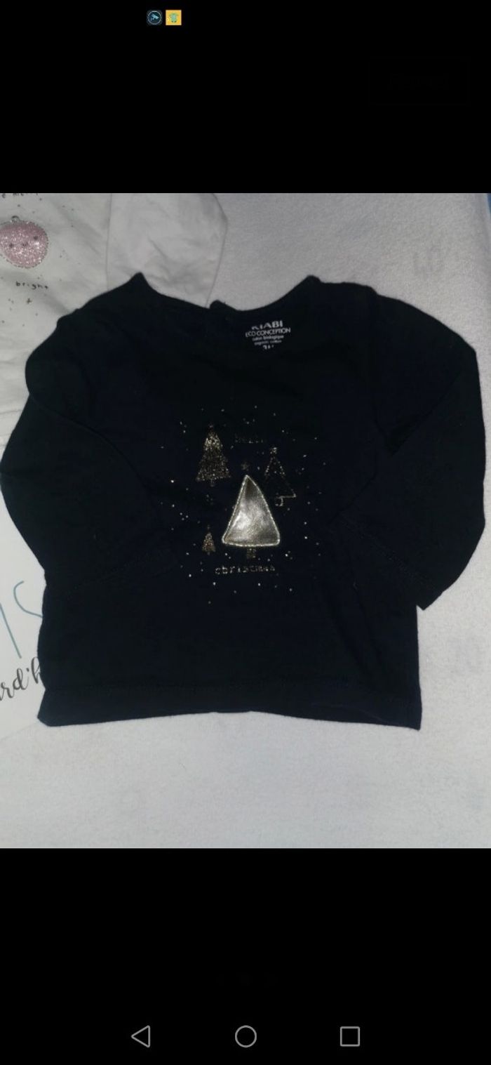 2 tee shirts manche longues. Theme noel.. 1 avec des boules et paillette et lautre sapin à paillettes
