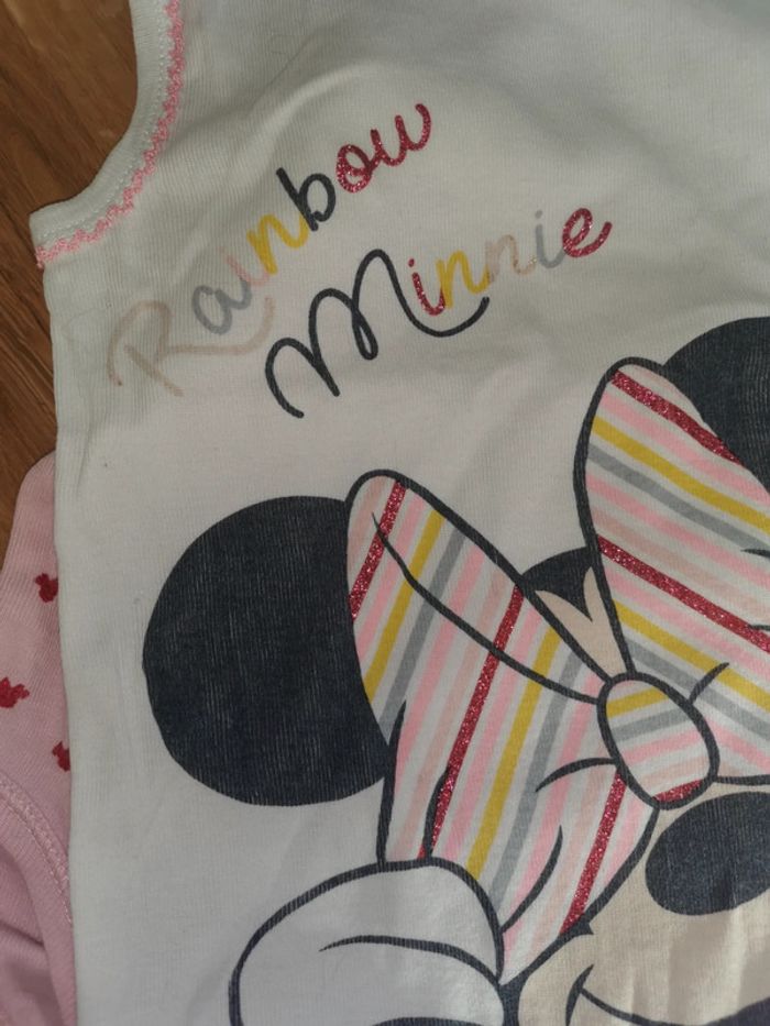Lot de 2 bodies manches courtes 36 mois Les paillettes du n de minnie sont partie au lavage.