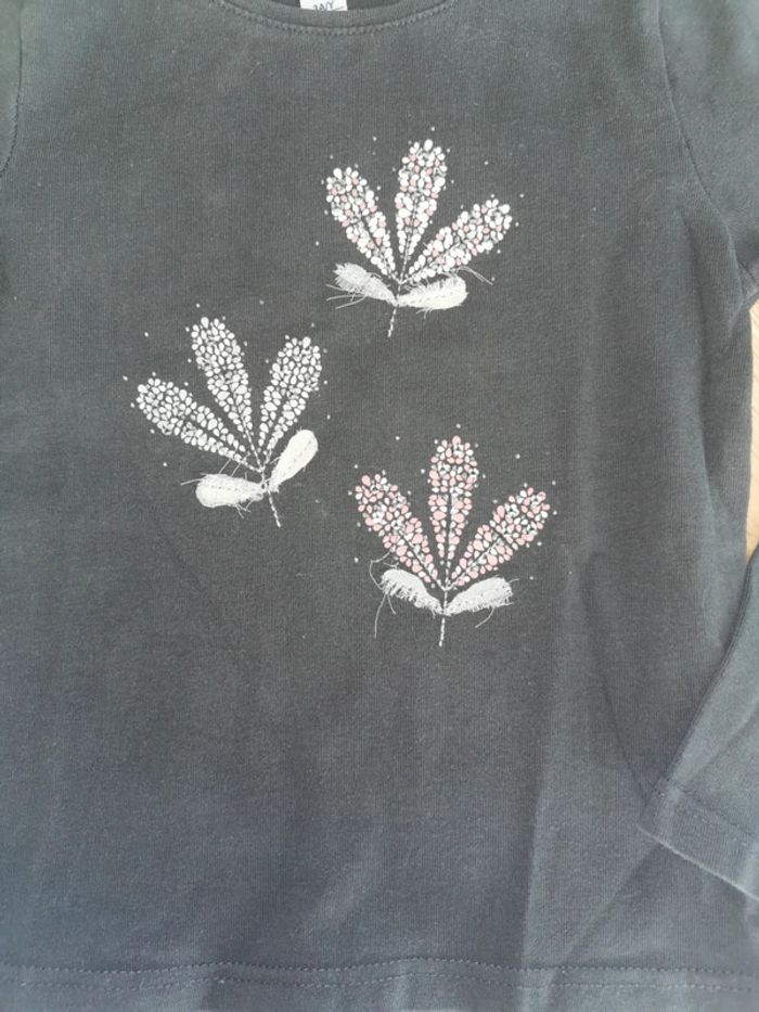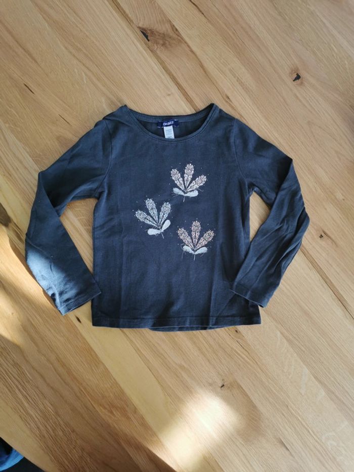 T-shirt manches longues gris foncé 3 ans / 98cm. Voir dernière photo le tissus des feuilles s'effile.
