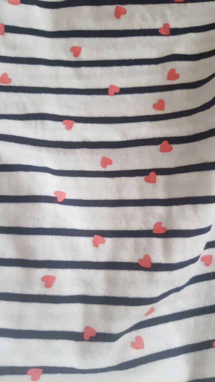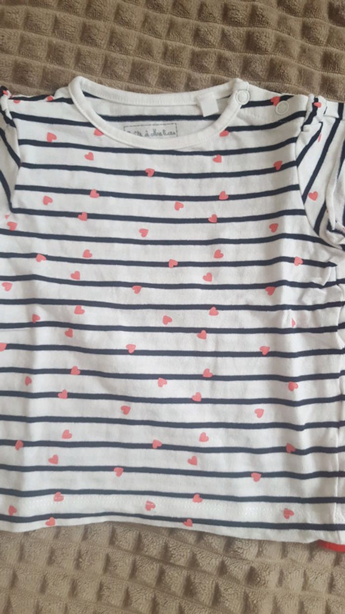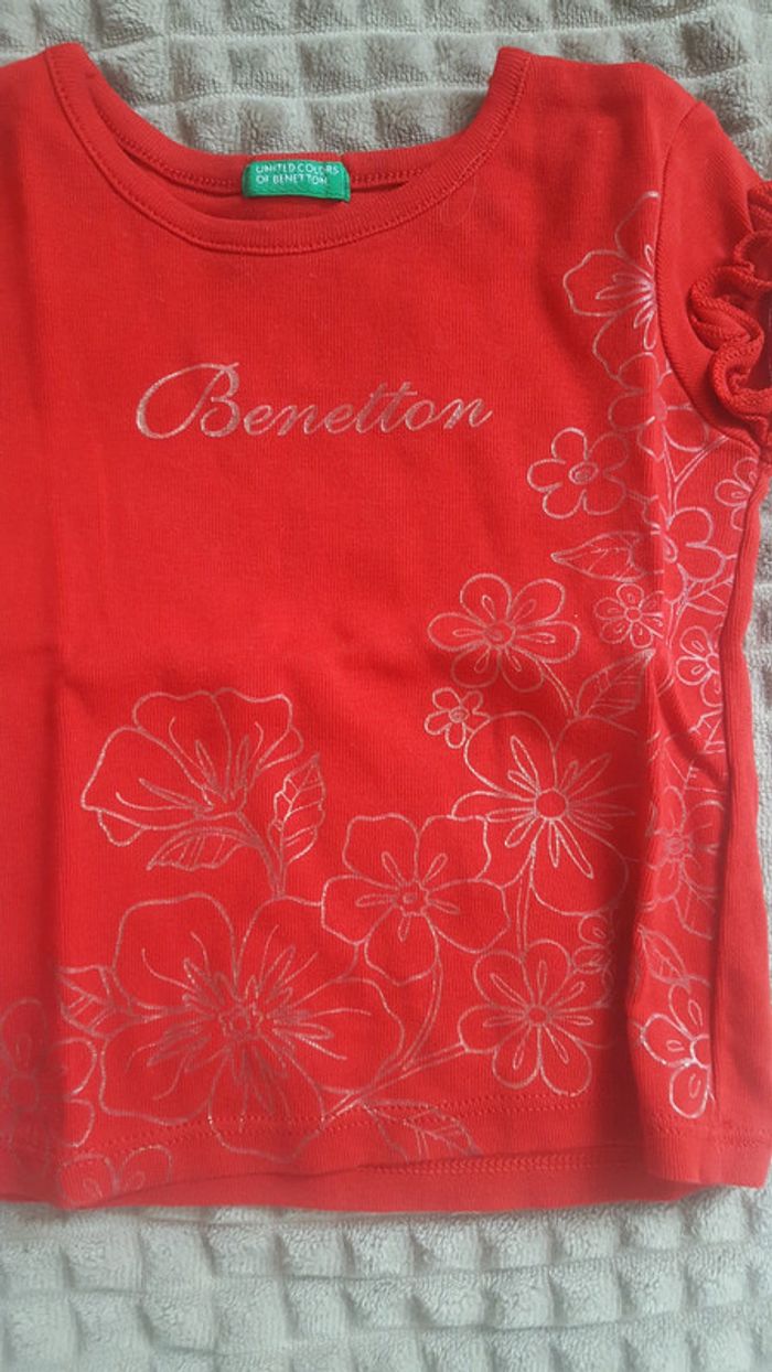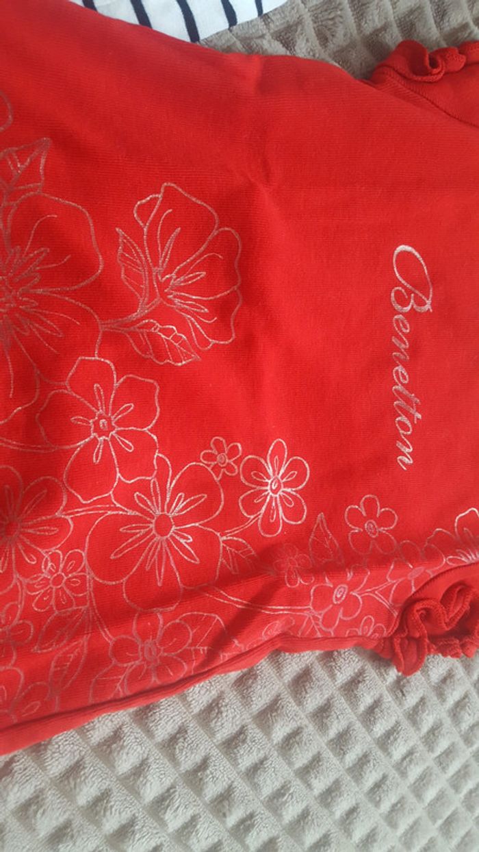 Lot de 2 t-shirt 12 mois. Le rouge benetton porté une fois , étiquette 18mois mais taille 12 mois. Le blanc rayé bleu marine avec de petit coeur rose jamais porté juste lavé, boîte à malice. #edwige2010fille12mois