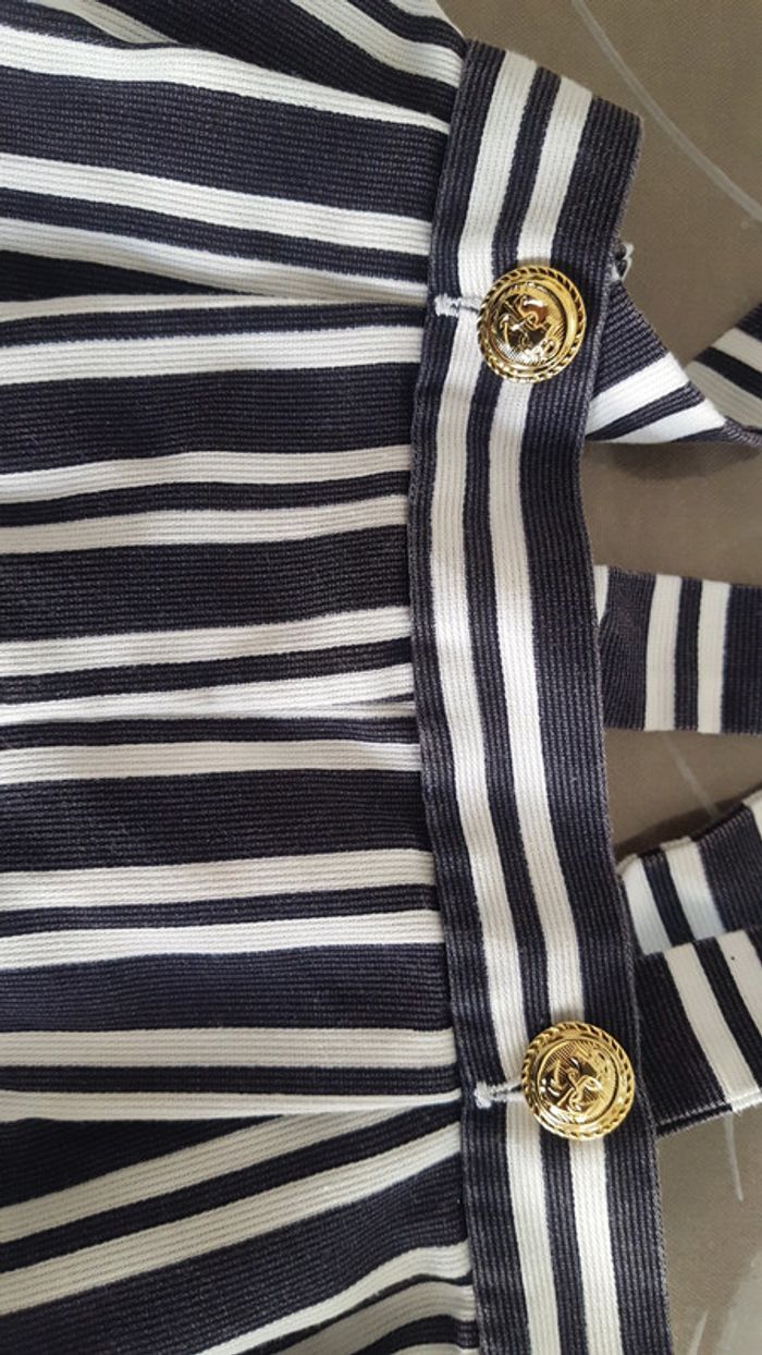 Short léger rayé bleu marine foncé /blanc 74cm légère usure dû au lavage.