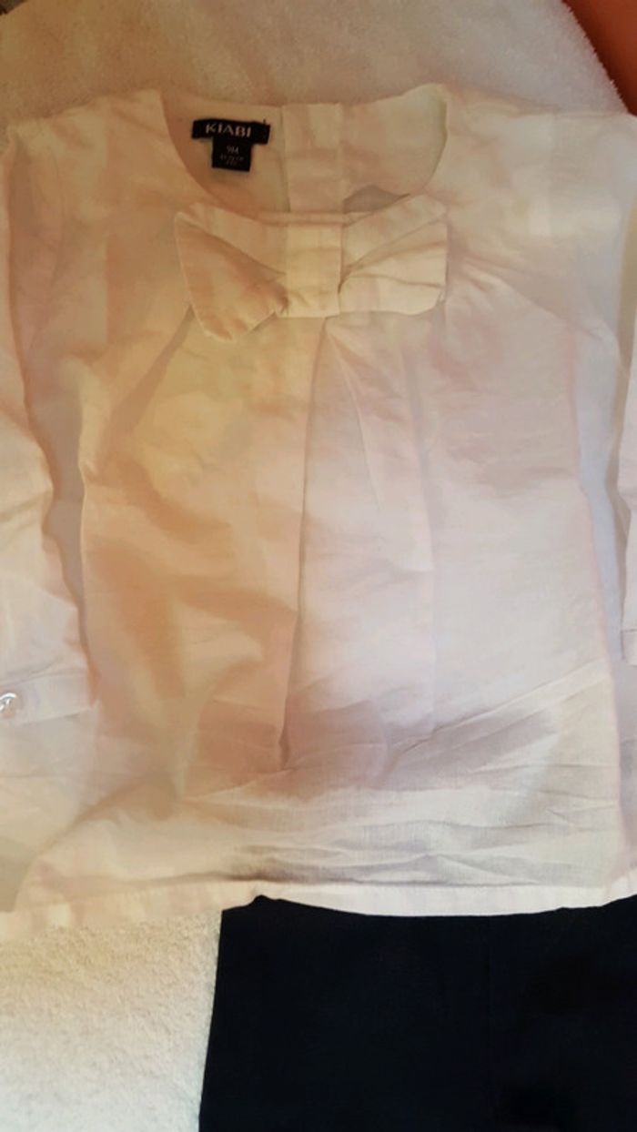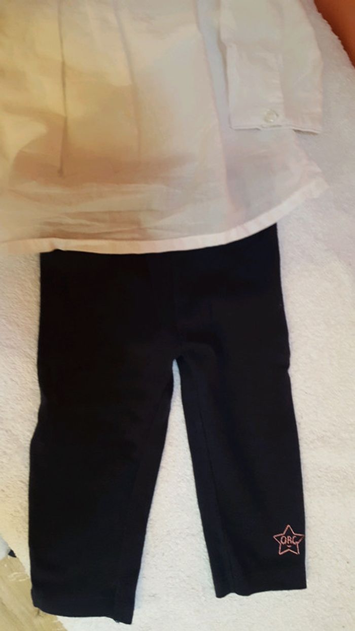 Enssemble 9 mois composé d'une blouse blanche kiabi et d'un leggins bleu marine . #edwige2010fille9mois