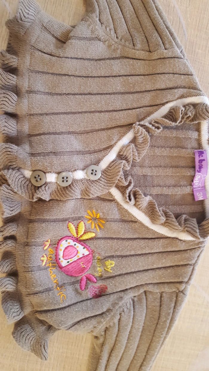 Petit gilet . Couleur marron kaki. 3 mois