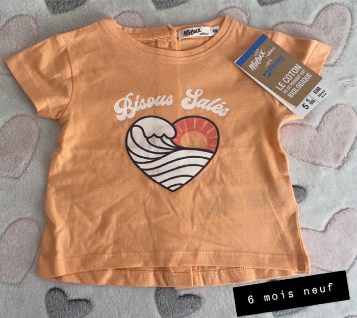 Haut taille 6 mois neuf encore étiqueter C’est plus couleur rose/saumon sa ne fais pas la bonne couleur sur la photo ..