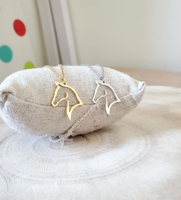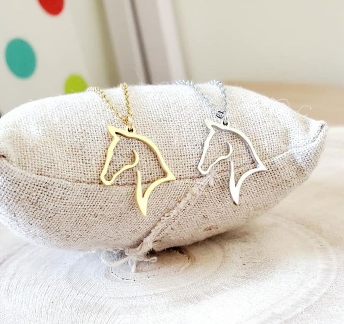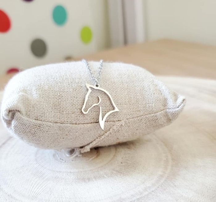 Collier chaine et pendentif fantaisie pour femme et homme pendentif cheval, collier discret et élégant de 43,5 cm de longueur. Matière: acier inoxydable. Couleur argent.