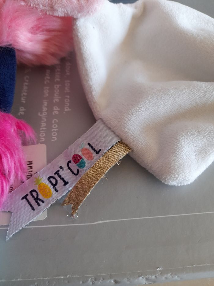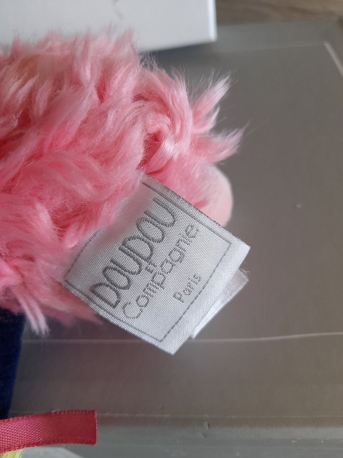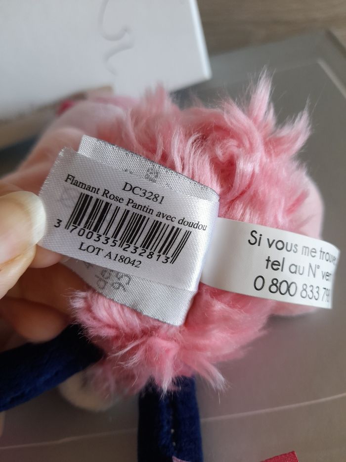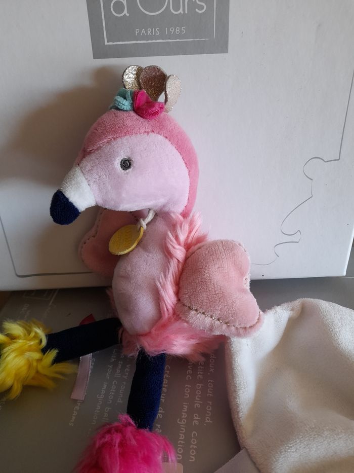 Peluche doudou flamand rose pantin avec doudou De la marque doudou et compagnie Référence DC3281 en bon état Vendu sans la boîte