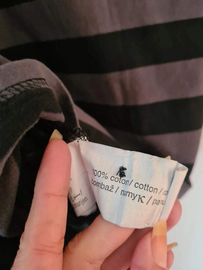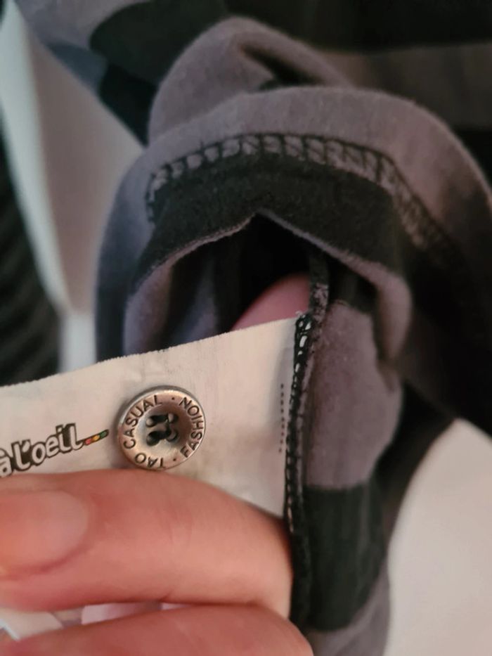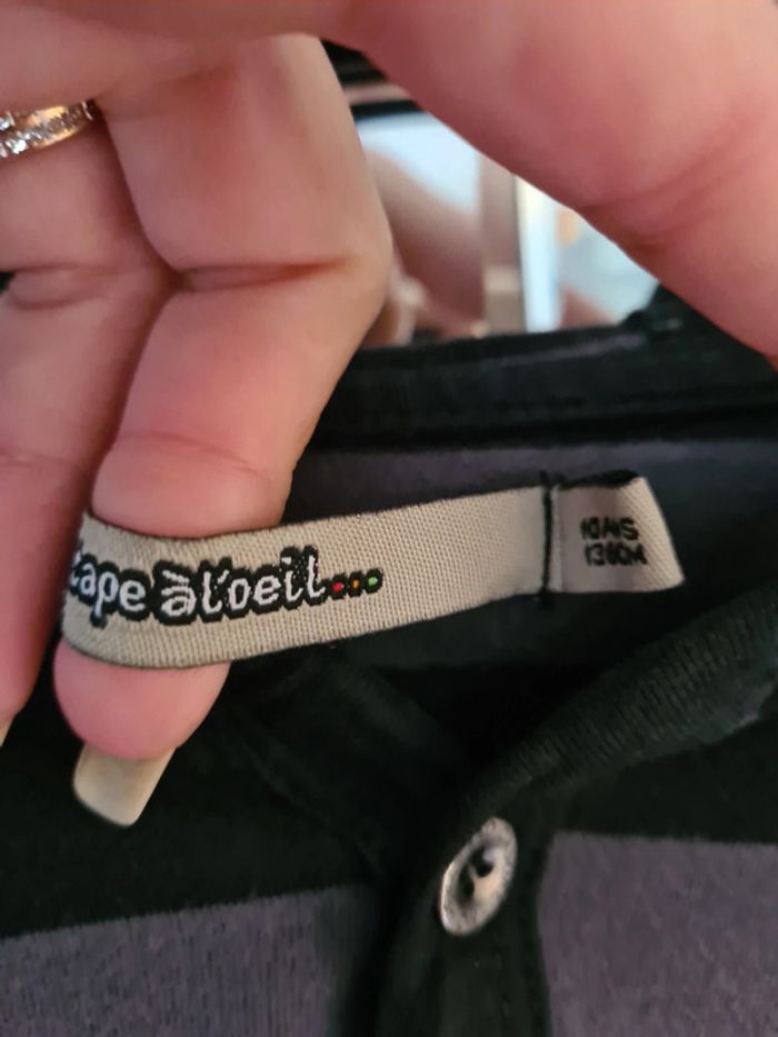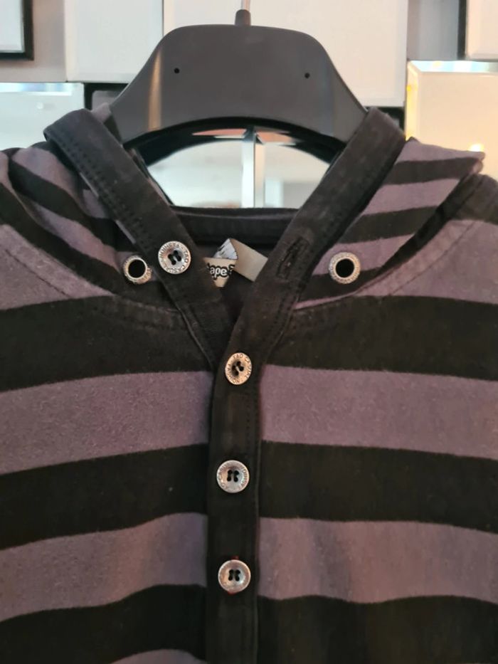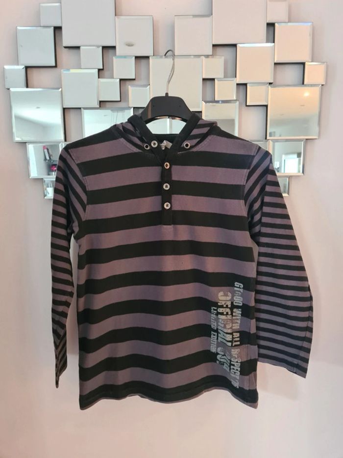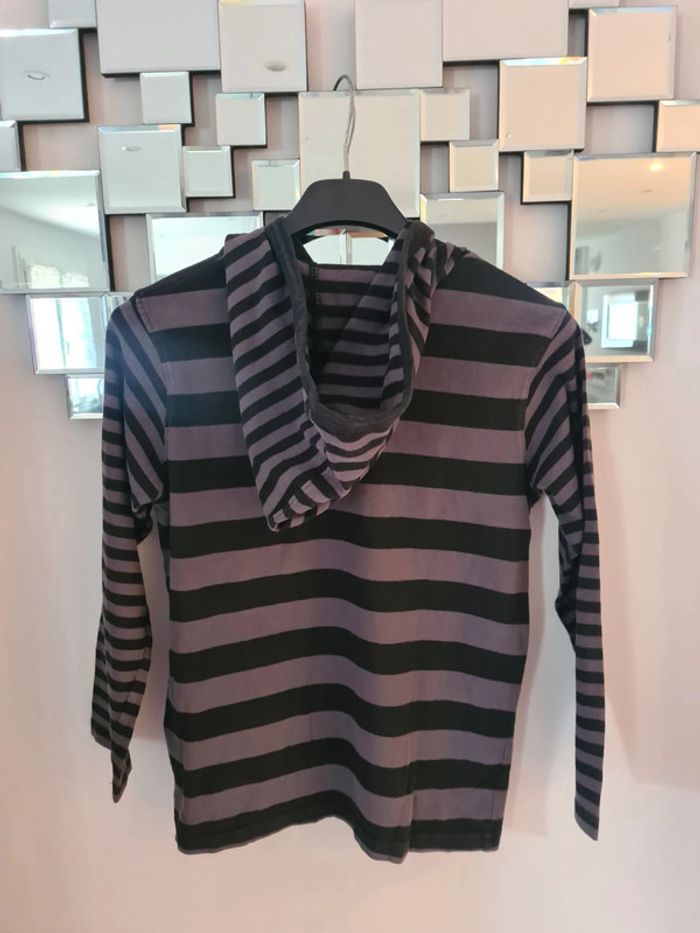 Tee-shirt à manches longues et à capuche Rayé noir et gris Tape à l œil En parfait état Bouton de rechange sur l étiquette #virginie222010ansgarcon
