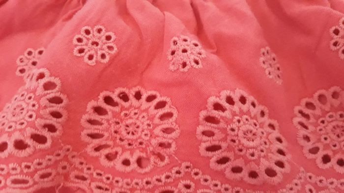 Haut corail pour fille avec épaules dénudées il y a des détails en dentelles Resserré à la taille