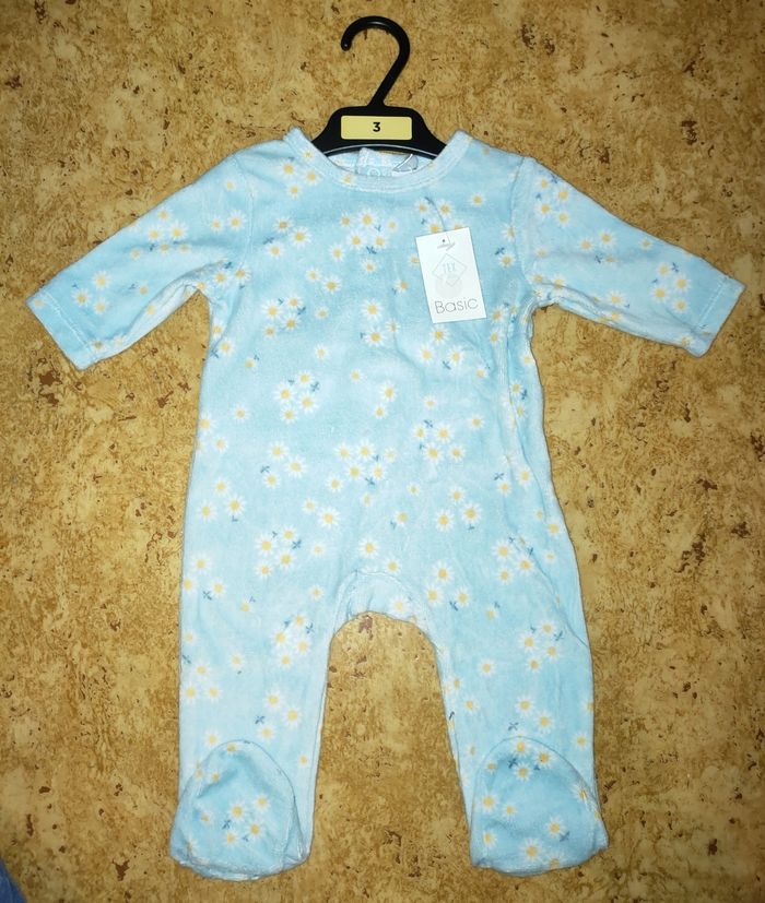 Pyjama en velours de couleur bleu clair, avec motif fleurs