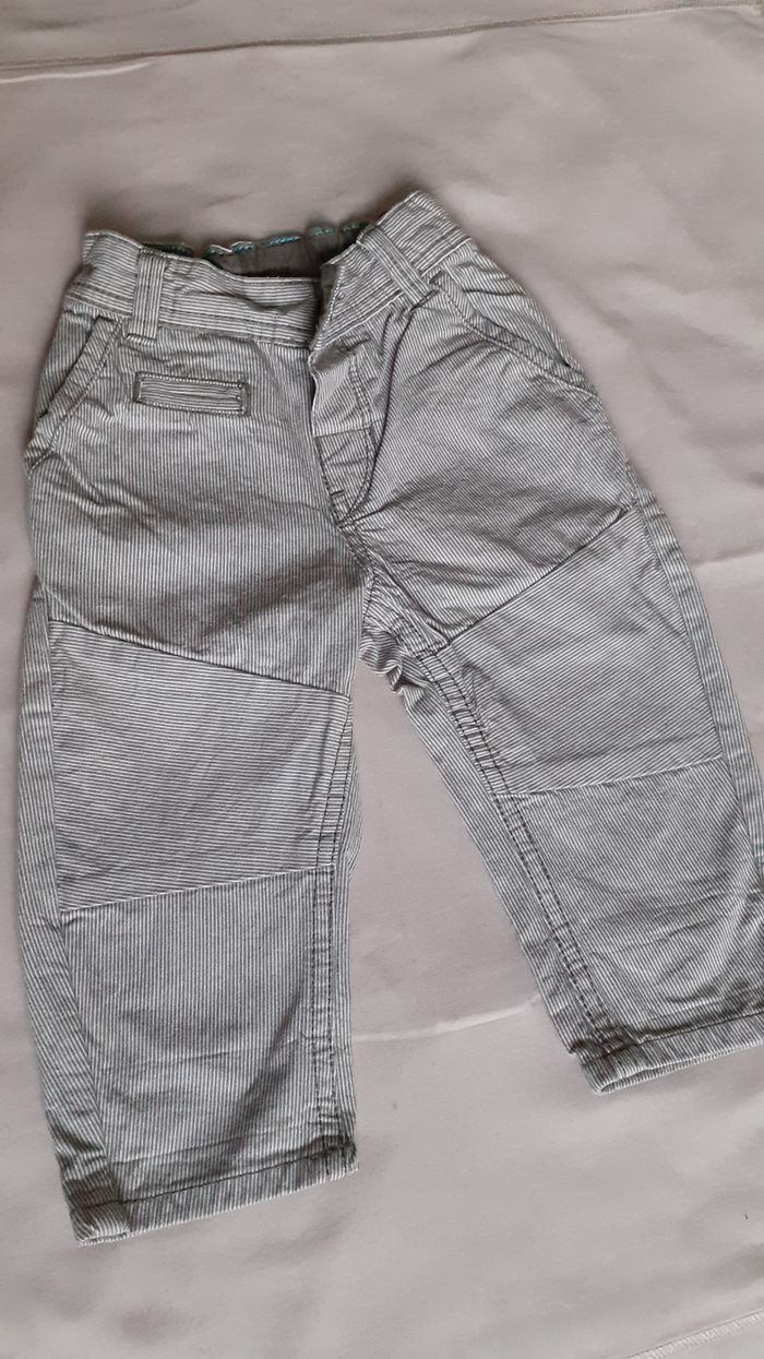 Pantalon en toile épaisse kaki avec fines rayures blanches marque H&M 6 mois