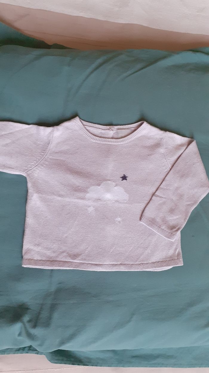 Vends un pull en maille de bambou très fin couleur gris clair marque Marese 6 mois
