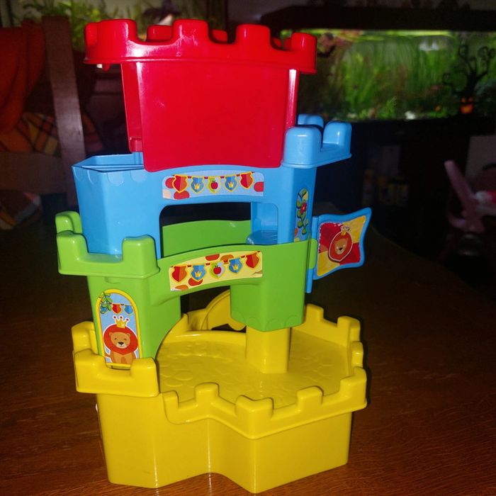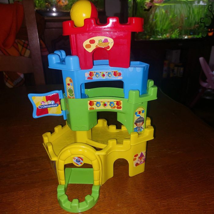 Château Roule-Boule de Baby Clementoni De 10 à 36 mois La boule descend les étages. Quelques marques d'usures sur l'étiquette du drapeau (voir photo)
