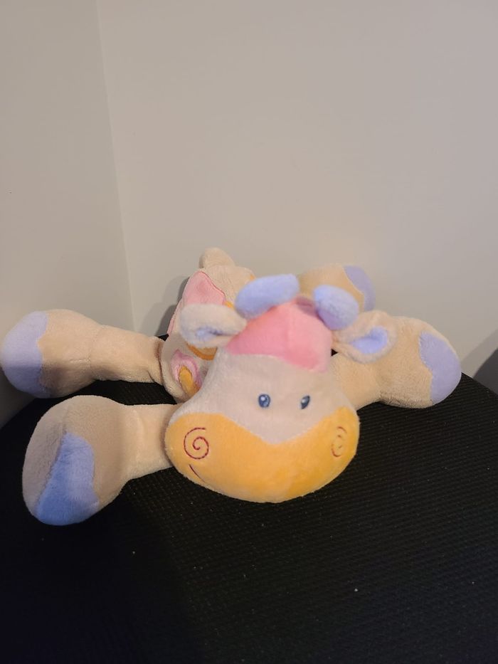 Peluche doudou vache NATTOU JOLLYMEX beige nuage rose orange bleu 28 cm 84