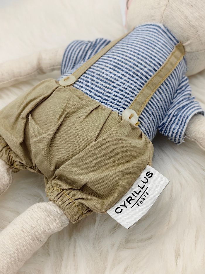 Doudou lapin crème haut rayé bleu marine blanc short à bretelles Beige Cyrillus lin Composition 85% coton, 15% lin. Garnissage 100% polyester. Marque : Cyrillus Taille : 37CM environ État : Parfait état Vous achetez le doudou que vous voyez. Entièrement vérifié. 🔍Une recherche particulière ? Tout n'est pas en ligne, n'hésitez pas à me contacter 😊 🛒Plusieurs articles vous intéressent ? Contactez moi afin que je créé l'annonce 😉 Ref : M6 #VDR_LAPIN #VDR_CYRILLUS