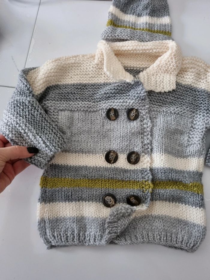 Gilet tricoter main jamais porter avec bonnet . 6/9 mois mais plus 6 mois