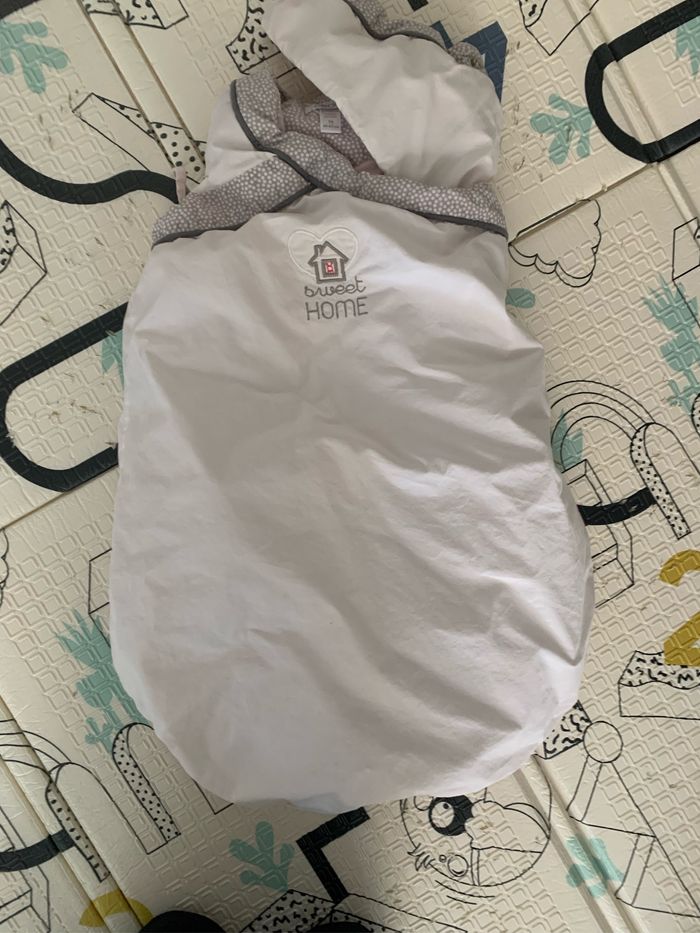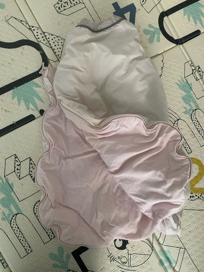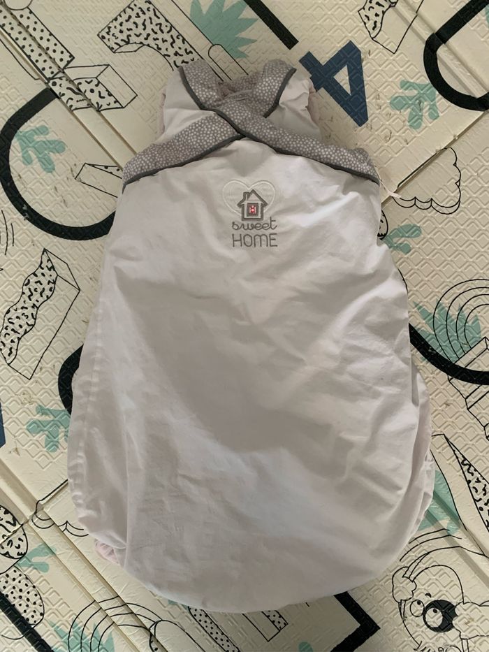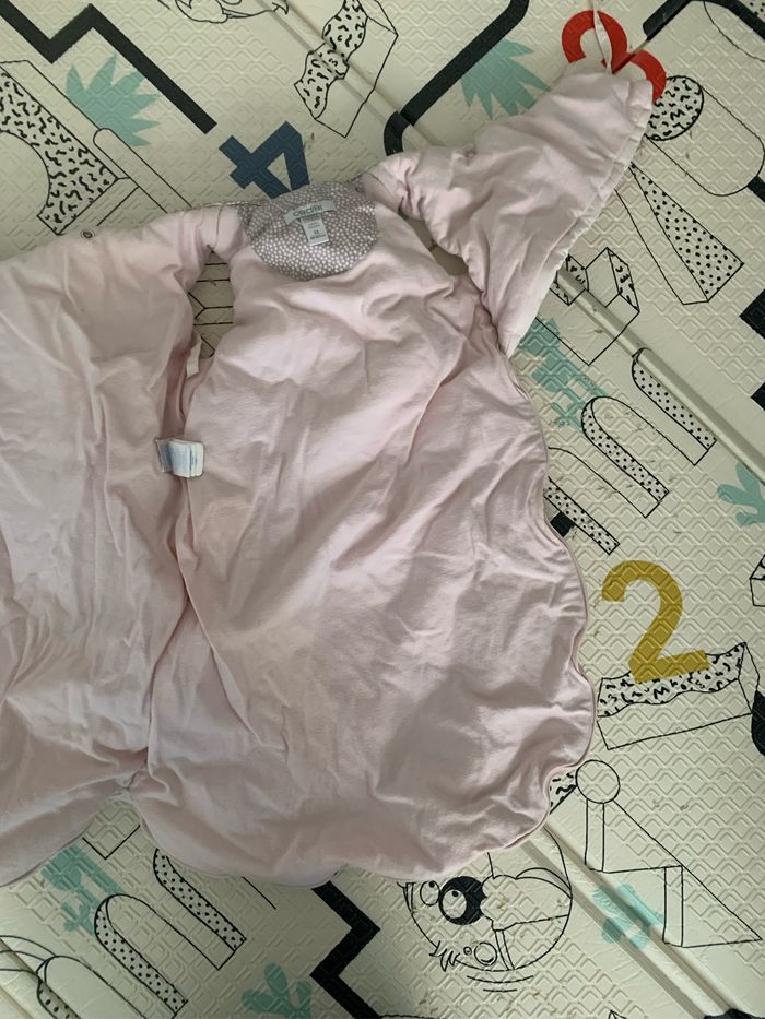 Gigoteuse chaude au moins TOG 2, T0 (0-6mois) . Propre et sans défaut à part le fait que la gigoteuse a déteint en rose