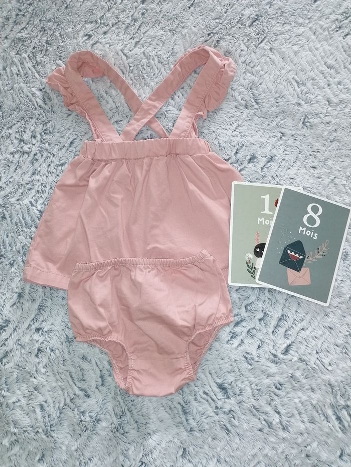 Je vends cette jupe salopette avec son bloomer Kiabi Taille 18 mois En très bon état, mise 2 fois avec des collants Réglable avec des boutons