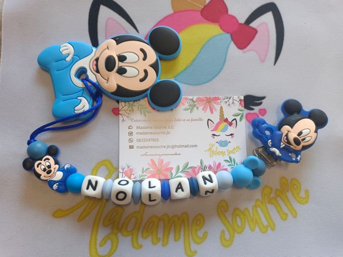 Coffret Attache tétine + Jouet dentition Mickey 100% personnalisable en silicone alimentaire et/ou bois naturel. Large choix de perles, le style, les couleurs, nous personnalisons ensemble main dans la main pour créer votre accessoire idéal. Contactez-moi par message pour personnaliser ou tout renseignement.
