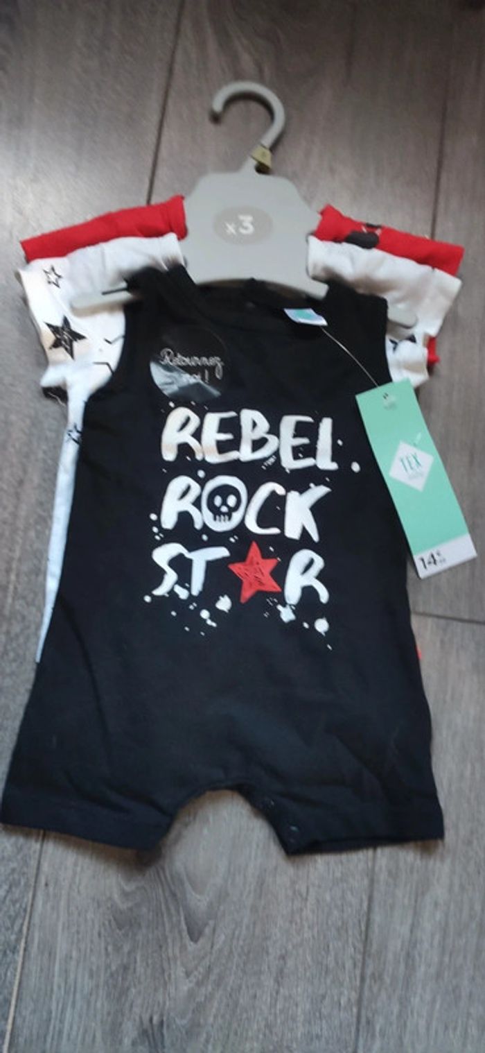 Lots de 3 pyjamas short une pièce idéal pour l'été taille 1 mois. Neuf, jamais porté, erreur de taille.