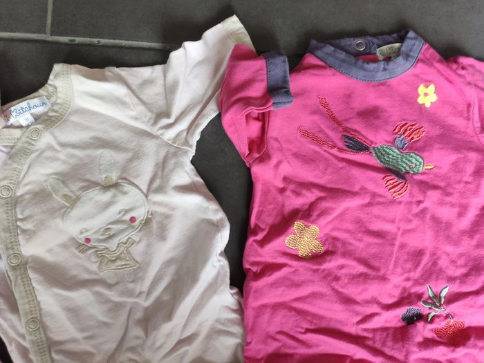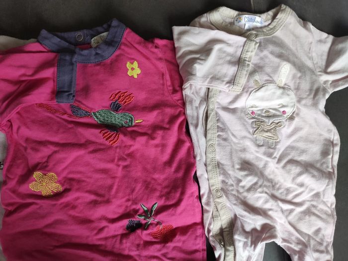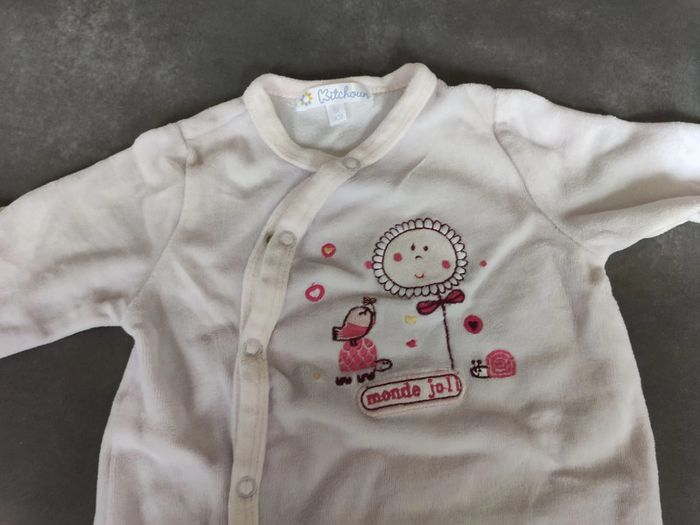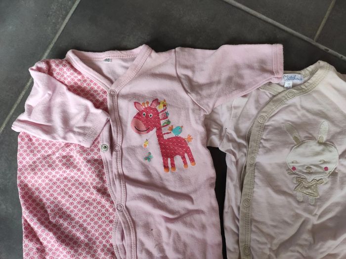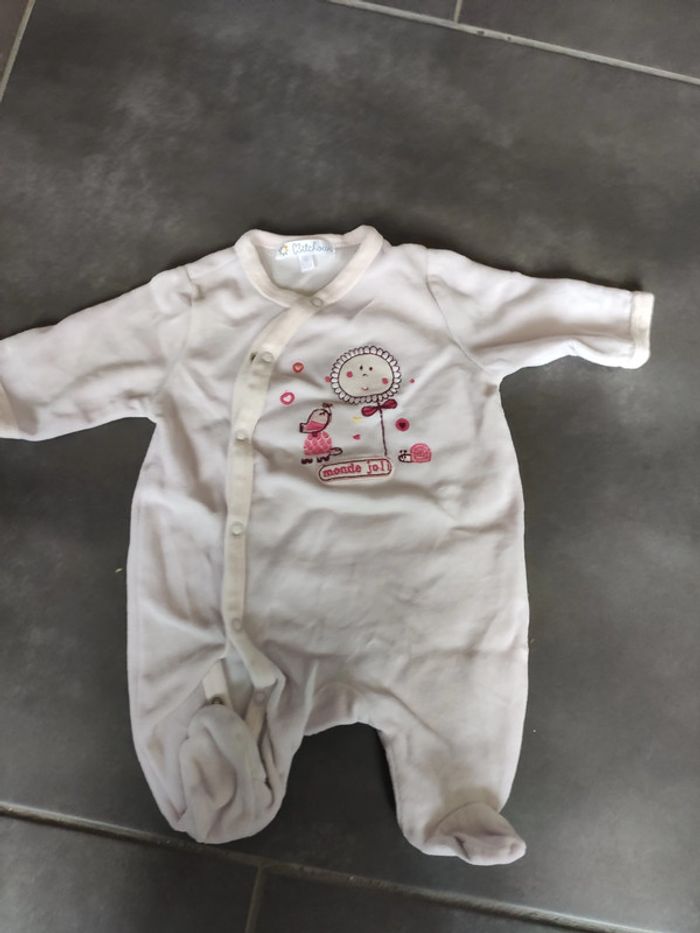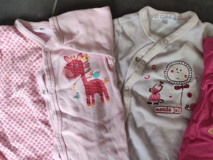Lots de pyjamas une pièce fille, de taille 1 mois, idéal pour la mi-saison. Plusieurs marques différentes. En très bon état.