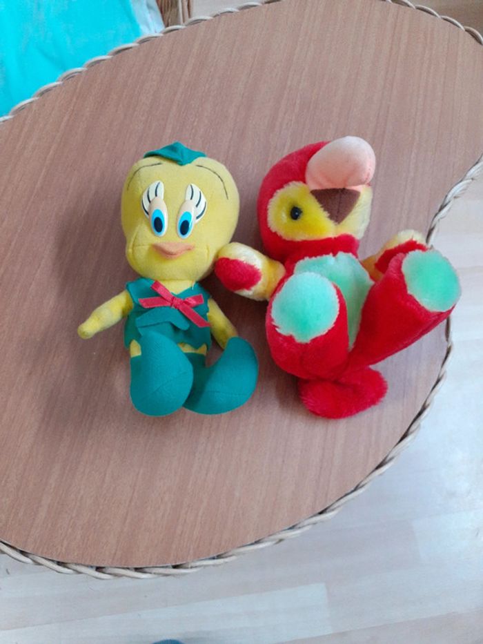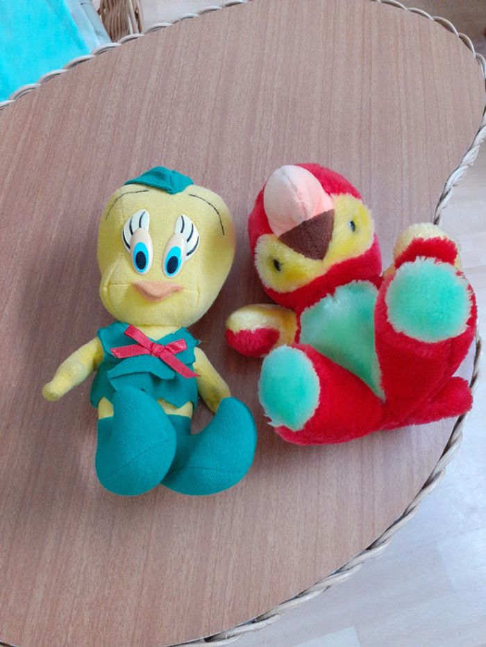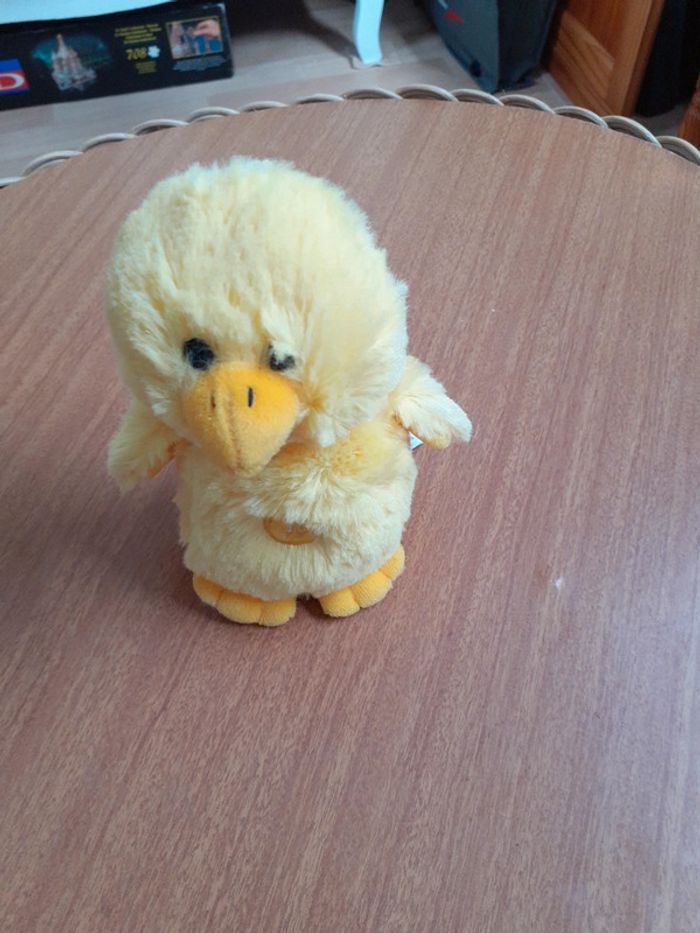 Titi peut être accrocher par son béret le perroquet tient assis poussin on appuis sur son ventre il cri