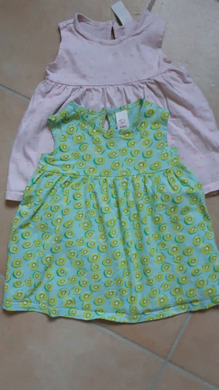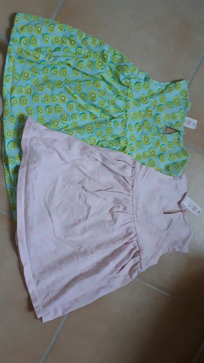 La petite robe verte motif kiwis et la rose motif glaces Très légères idéales pour l'été Taille 80cm #cessforeverneufmois #robe9mois #robelegere9mois #robefine9mois