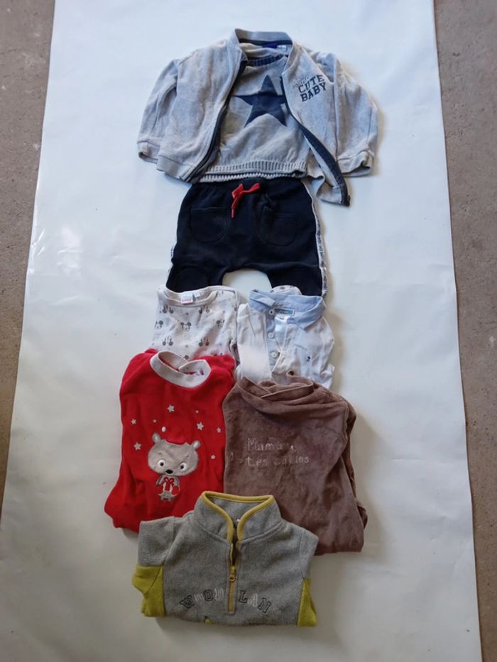 Lot 12 mois bon état comprenant : 2 pyjama 1 piéce,1 pull polaire,2 bodies manches longues,1 veste,1 jogging,1 pull #12moisjessica07700