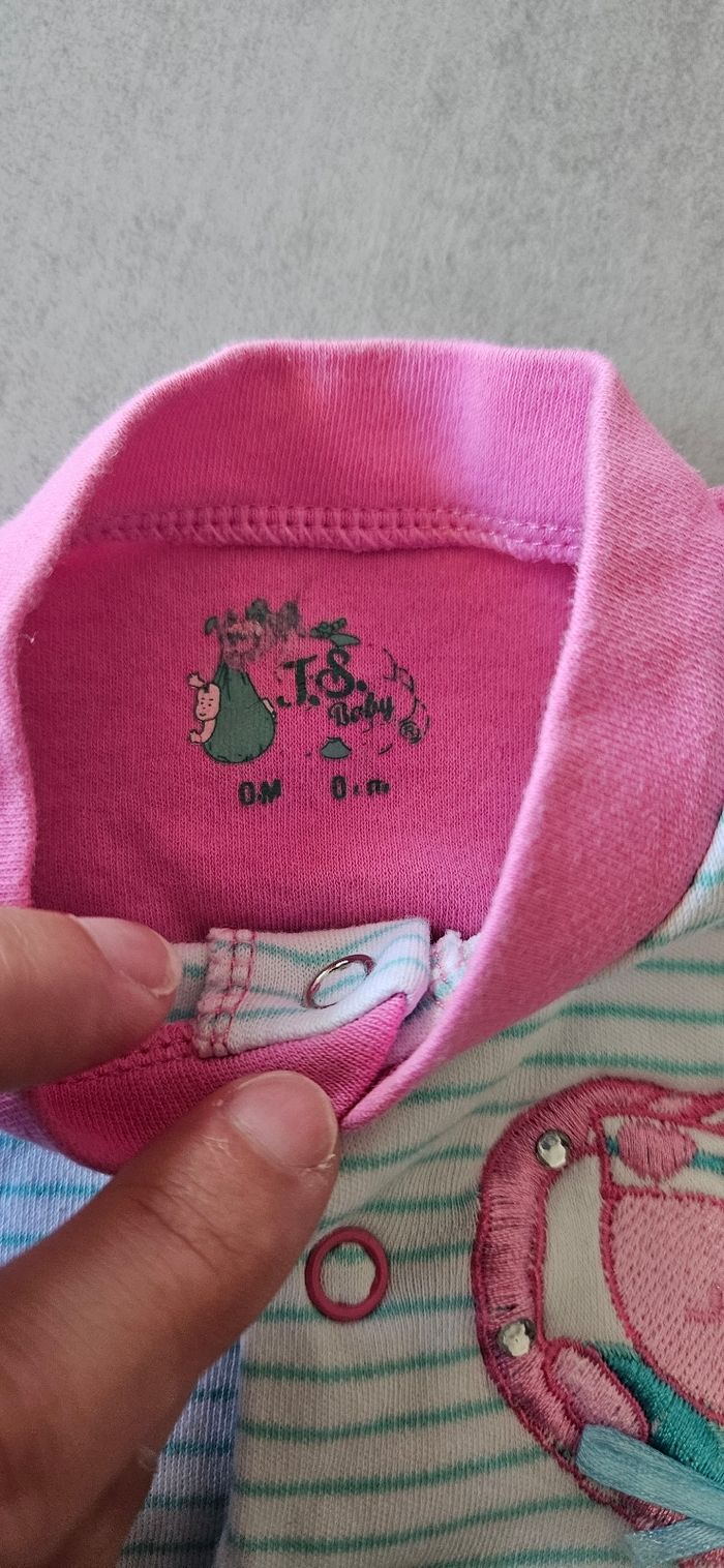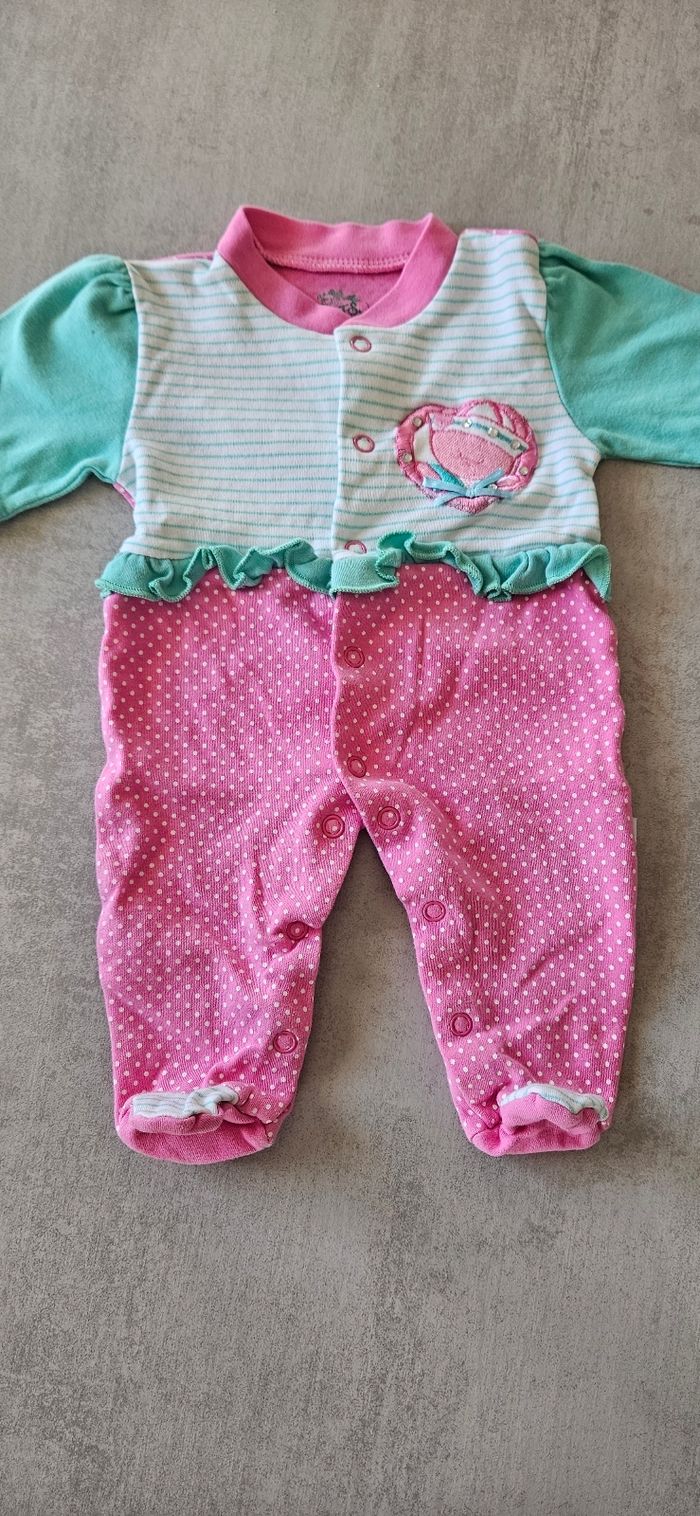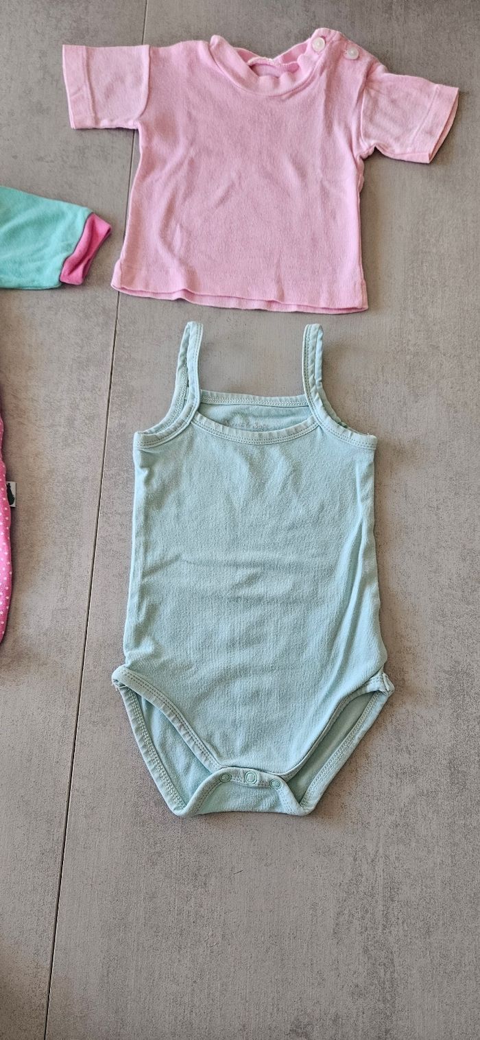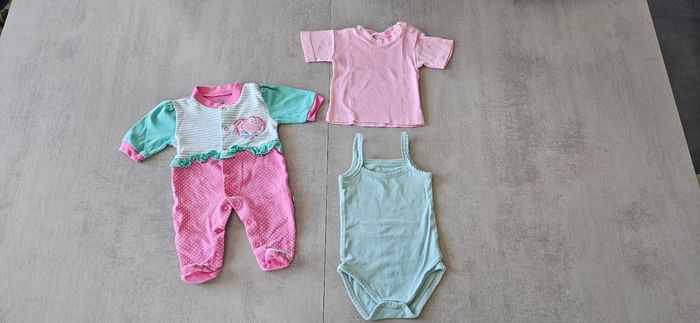 Lot taille 0 qui comprend : - 1 pyjama coton - 1 t-shirt manches courtes - 1 body à bretelles Taille naissance 50 cm, idéal pour l'été