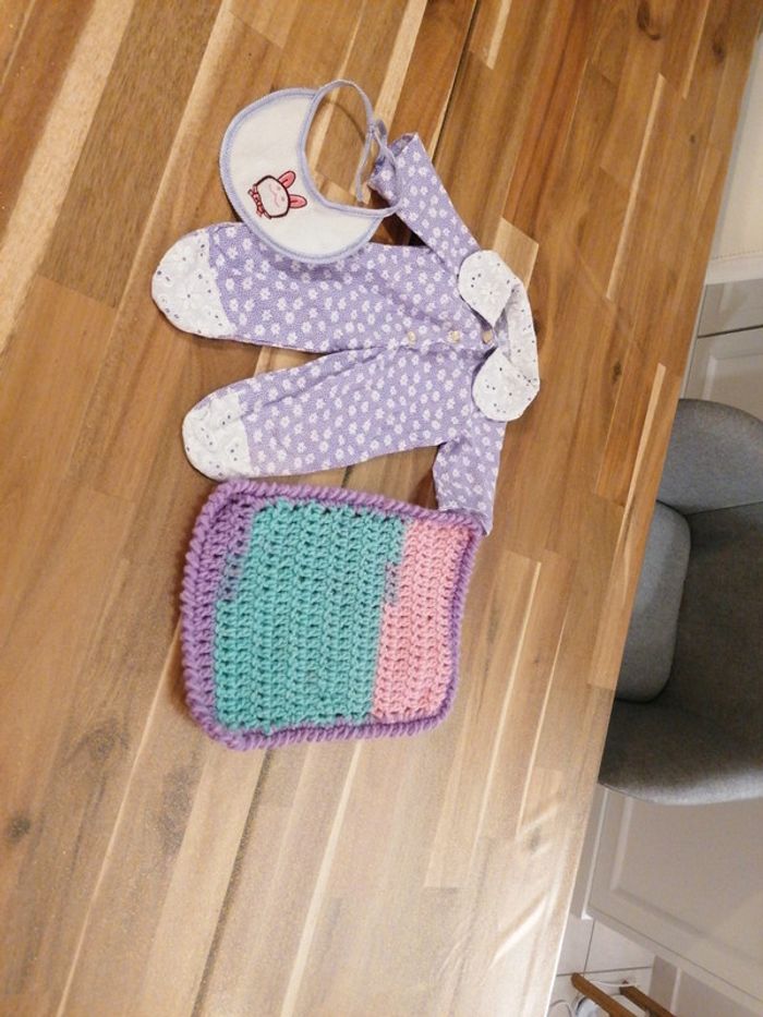 Une couverture, une tenue et un bavoir