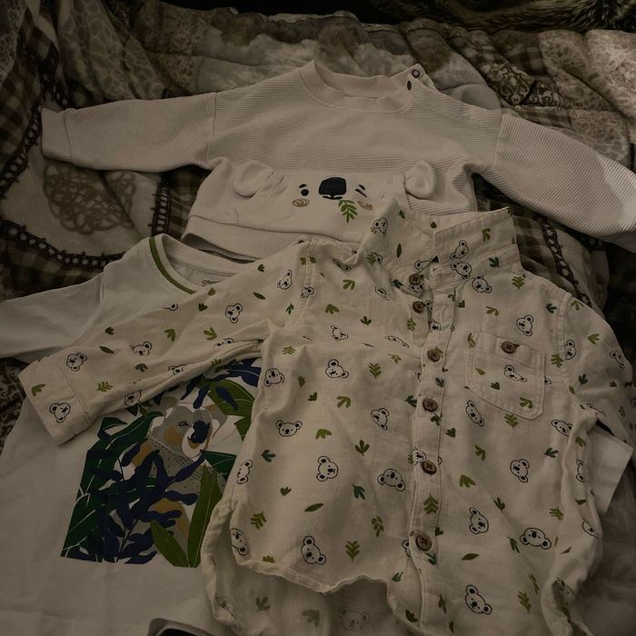 Bonjour Je vends ce lot de 3 vêtements collection koala orchestra en 18 mois Comprenant 1 chemise Un t-shirt manche longue et un sweat-shirt