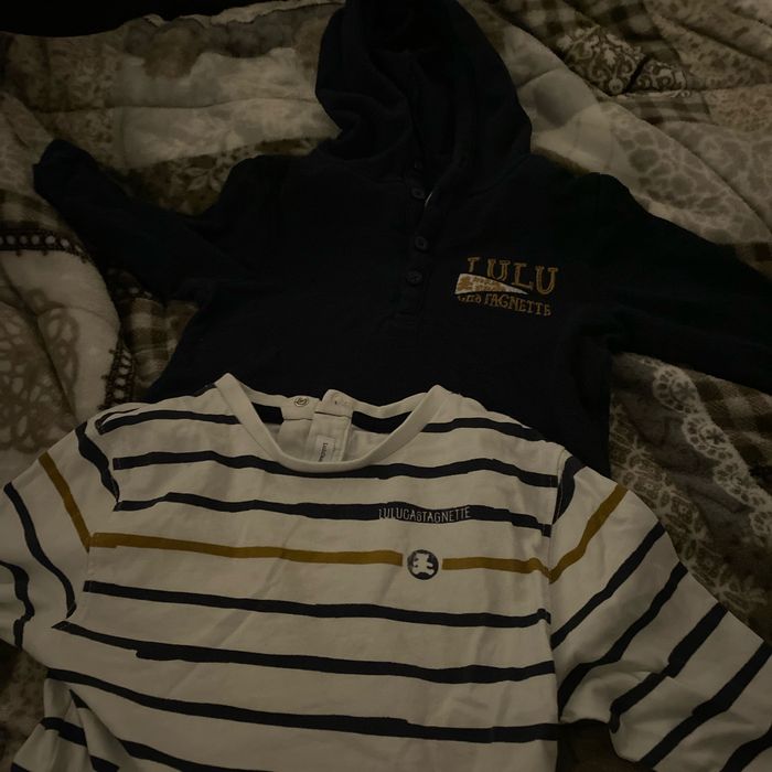 Je vends un ensemble lulu castagnette en 18 mois Comprend un t-shirt manche longue et un pull