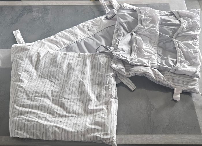 👶 Tour de lit obaïbi Molletonné, pratique avec ses poches à mettre à l'extérieur du lit Très bon état Jamais utilisé juste lavé 🧼 Tous mes vêtements sont vendu lavés non repassés car je sais que les personnes les relavent ( je fais de même 😊 ) 🏷 Réduction en lot possible