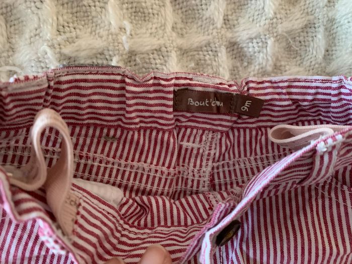 Taille: 9 mois Très bon état Réglable à la taille Rouge rayé blanc