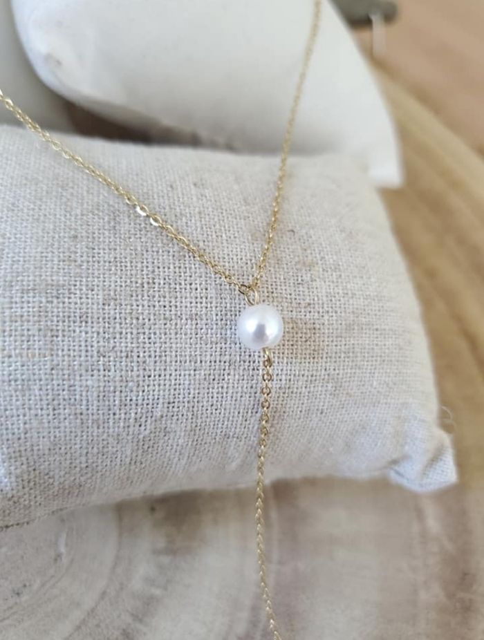 Collier de qualité en acier inoxydable tendance pour femme chic cérémonie et mariage, vous pourrez le porter avec une multitude de tenues. Longueur de 42 cm + 8 cm. Matière: acier inoxydable et perle nacre. Couleurs: or, et perle blanc nacré.