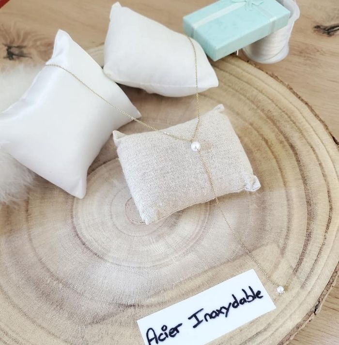 Collier cérémonie mariage long acier  or nacre - photo numéro 5