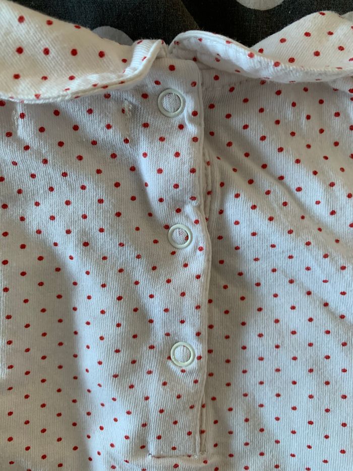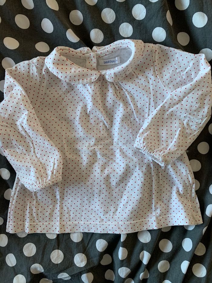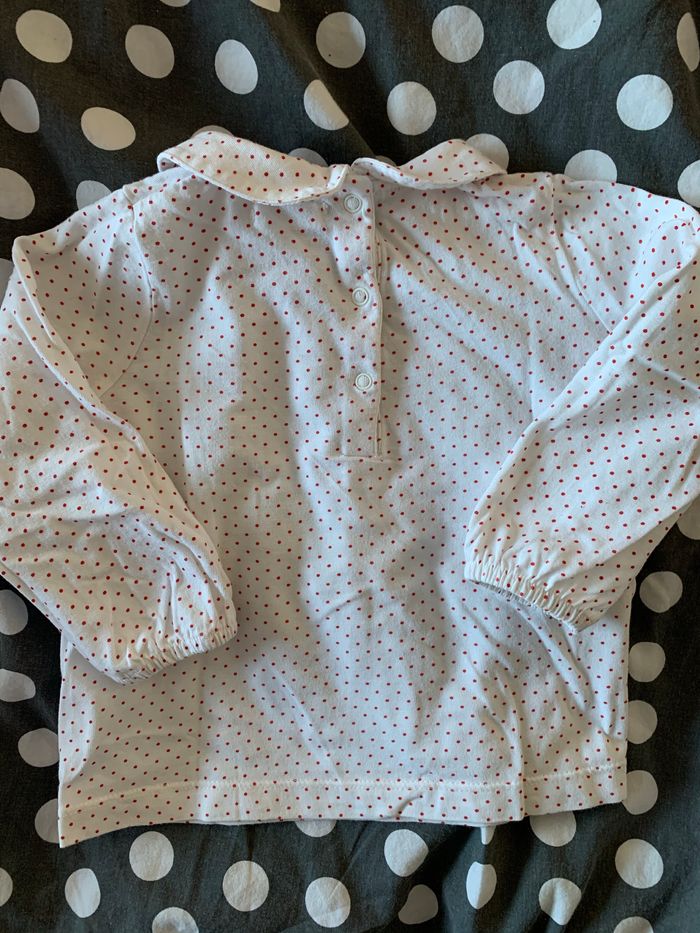 Type blouse Très bon état Blanc à pois rouge 3 boutons pression dans le dos au niveau du col