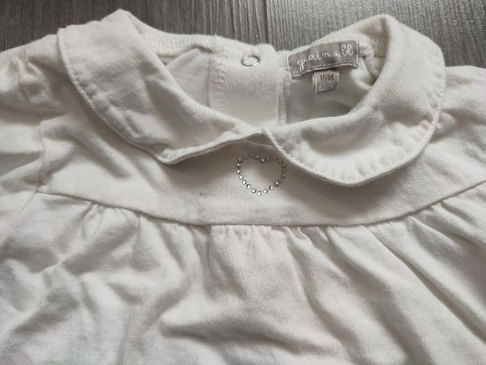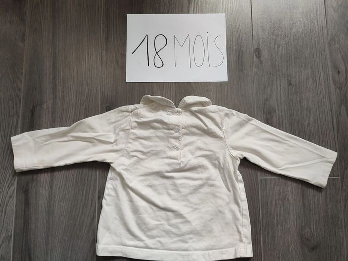 T-shirt blanc à col claudine à manches longues fille 18 mois
