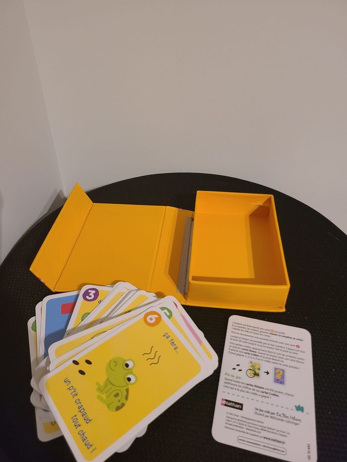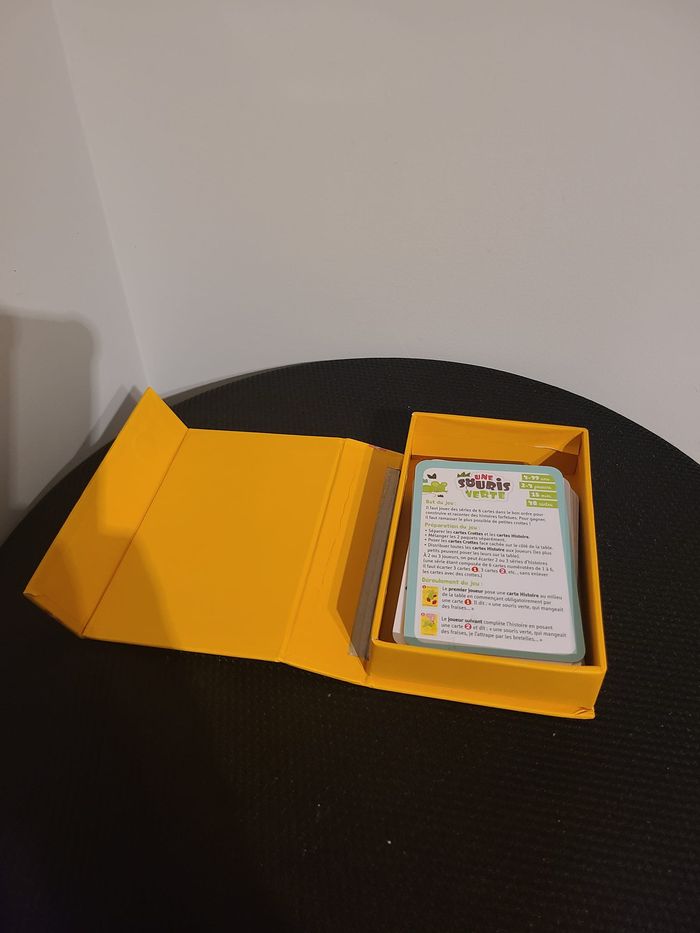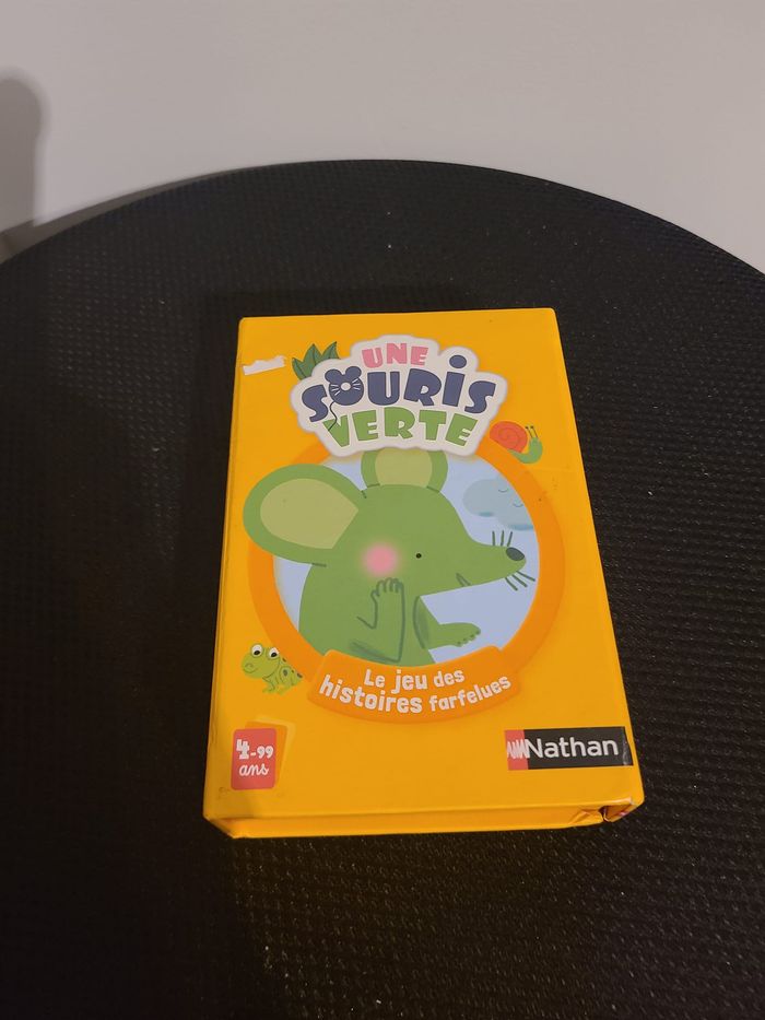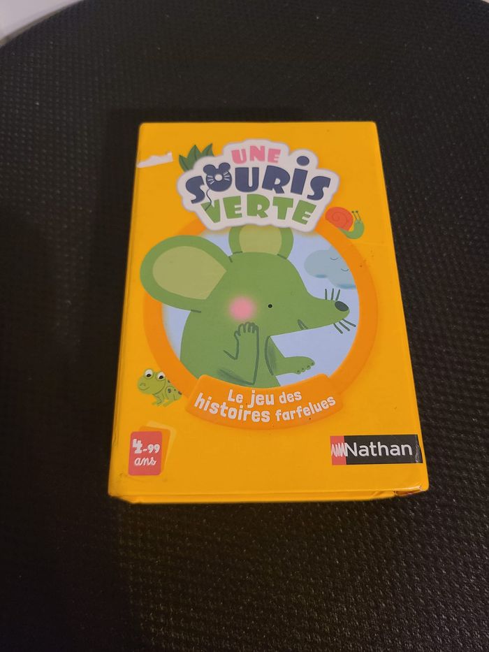Un jeu de cartes dans lequel on joue à construire des histoires farfelues. On distribue toutes les cartes, elles sont numérotées de 1 à 6 et représentent des petites scènes ou des séquences d'histoires. Le premier joueur pose une carte 1 en chantant ce qu' il y voit (s'il n'a pas de carte 1, c'est au joueur suivant et ainsi de suite). Chaque histoire est composée de 6 séquences numérotées, chaque séquence est symbolisée par une carte (de 1 à 6) et parfois se trouve une petite crotte sur la carte Histoire, c'est une carte bonus, il faut piocher une carte crotte. Celui qui en a le plus à la fin de la partie à gagné. Chacun son tour on pose une partie de l'histoire . Pour la carte 1: une souris verte qui faisait du ch'val; carte 2: Je l'attrape par l'oreille; carte 3: Elle danse le rock & roll; carte 4: Ces messieurs me disent ;5: trempez là dans la boue ; carte 6: ce fera un petit mouton tout rond.